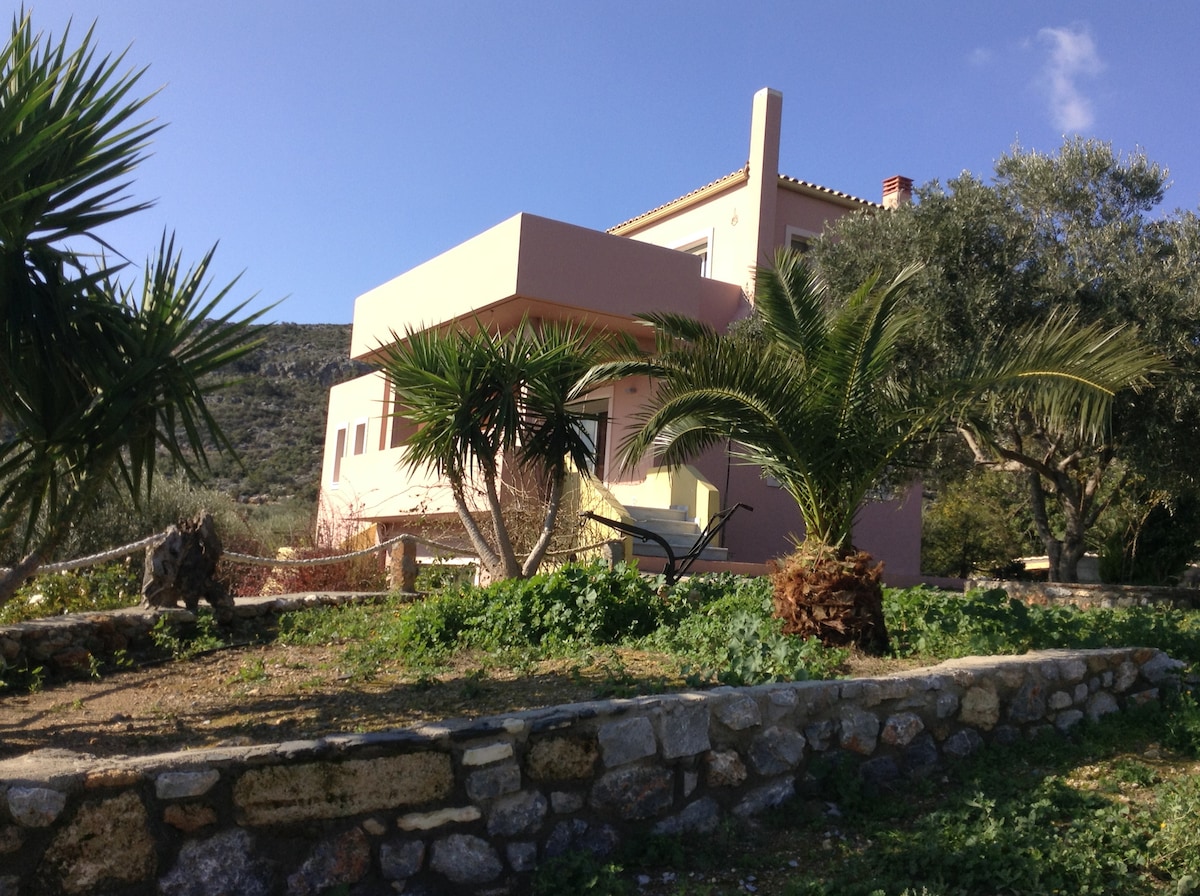 Anda dipersilakan ke rumah kami yang luas dan nyaman yang terletak di tengah - tengah desa Vigklafia Laconias. Rumah kami mempertahankan privasi dan ketenangannya sehingga Anda dapat menikmati liburan yang damai dan santai, hanya 3 menit berkendara dari pantai berpasir Pounta yang indah dan kota tenggelam Pavlopetri, serta perahu feri ke Pulau Elafonisos. Semua toko dan restoran lokal berada tepat di sebelah Anda. Castle of Monemvasia, Castania's Cave dan kapal feri ke Kythera semuanya berjarak 20 menit berkendara.
