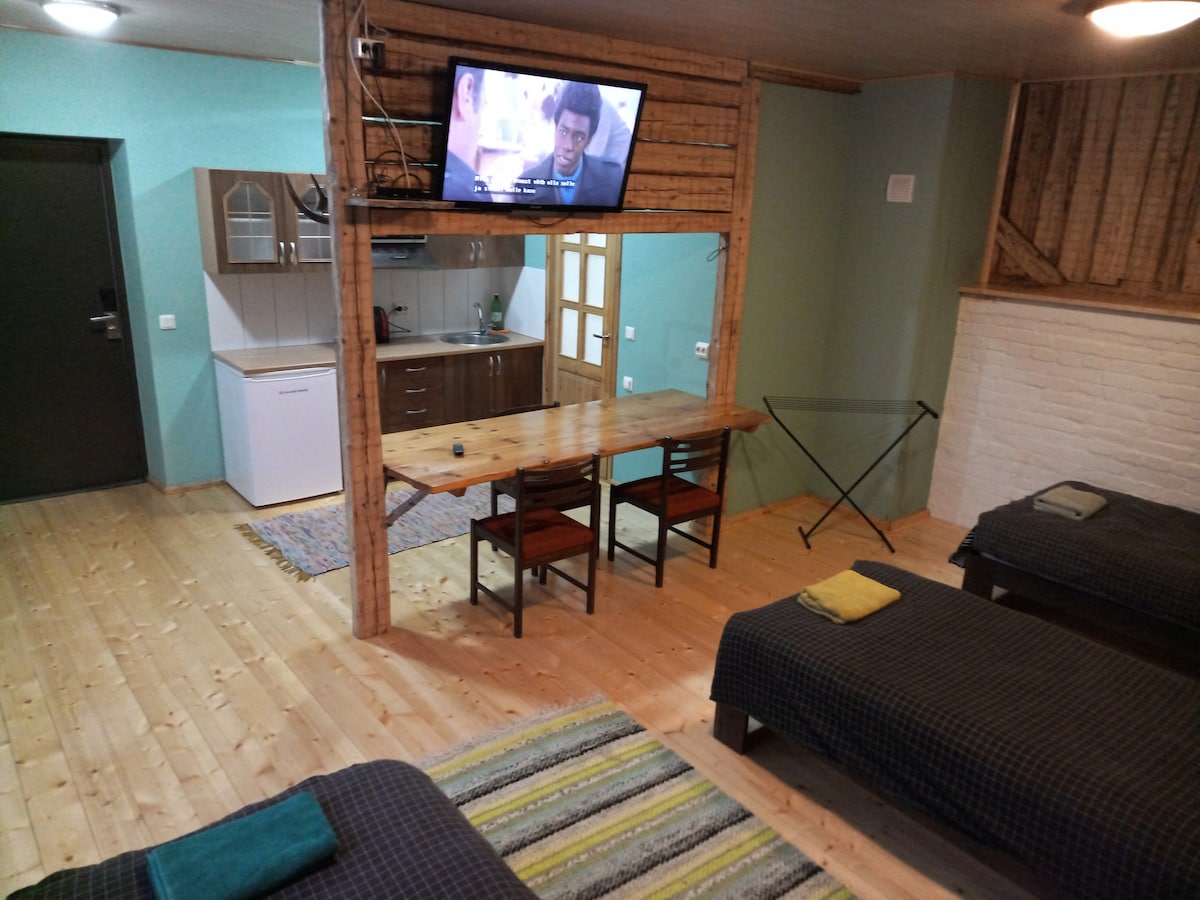 Welcome to our modern studio apartment located next to Viljandi's castle ruins. With a stylish design and great amenities, our apartment is perfect for up to three guests. You'll enjoy comfortable sleeping arrangements with a sofa bed and double bed, and fully equipped kitchen. Our apartment is just a short walk to the theater and city center. Stay connected with super-fast WiFi or enjoy downtime in our cozy and chic apartment. Book your stay today and experience the best of Viljandi.