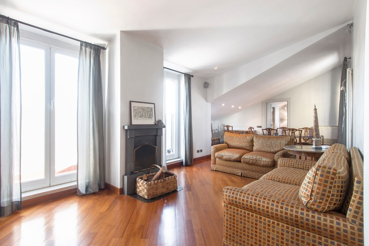 Apartemen ini berlokasi di lantai tiga sebuah bangunan bersejarah yang elegan dan terkenal tempat seniman Gian Lorenzo Bernini tinggal. Terdiri dari aula masuk, dapur, ruang tamu, 3 kamar tidur dan 3 kamar mandi yang 1 kamar tidur dan 1 kamar mandi di area loteng. Apartemen ini, cocok untuk kaum muda dan keluarga, tetap tenang dan terpelihara meski berada di pusat bersejarah dan kehidupan Roma. Beberapa meter jauhnya Anda akan menemukan Piazza di Spagna, monumen bersejarah utama dan jalan - jalan perbelanjaan paling terkenal.