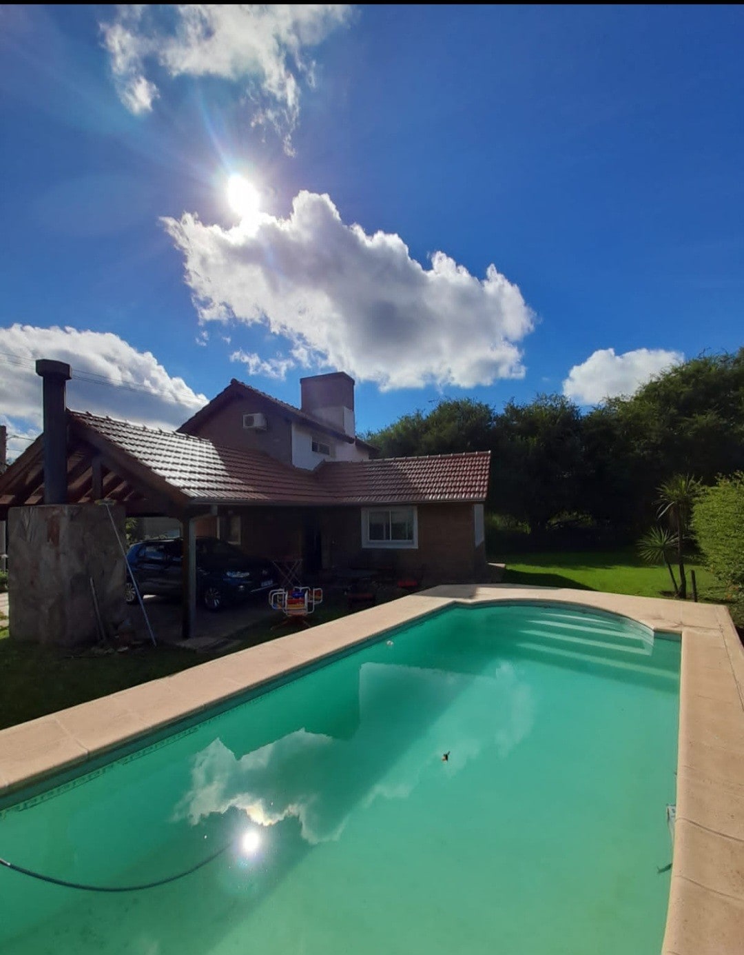 Tanah yang luas, dibatasi oleh pagar hidup, tukang batu, belalang, pencahayaan di atas pirca, lentera, pemanggang, kolam renang berpemanas, garasi. Di dalam rumah kamar yang luas dan berventilasi, kamar dengan AC, kompor rumah, ruang cuci, 1 kamar mandi dengan pusaran air untuk dua orang. TV melengkung 65, Directv, microwave, dll. PENTING: terletak di negara yang juga terdapat restoran, lapangan tenis, bola basket, bocce, skate, kolam renang, trekking di dekat reservasi, dll.