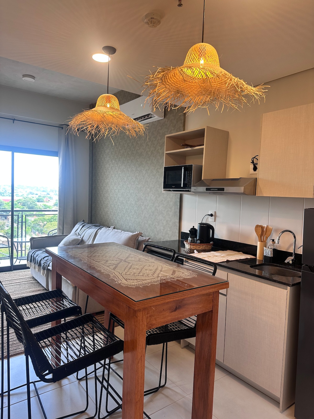 Apartemen baru yang elegan, dihiasi dengan baik dan dilengkapi sepenuhnya untuk memaksimalkan masa inap Anda. Terletak ideal di Villa Morra, beberapa langkah dari Shopping Villa Morra dan Mariscal, yang menjadikannya pilihan yang nyaman bagi mereka yang mencari bangunan kategori di titik tengah Asunción. Apartemen baru, memiliki semua peralatan dan perabotan serta TV 65" dengan kabel dan internet berkecepatan tinggi.
