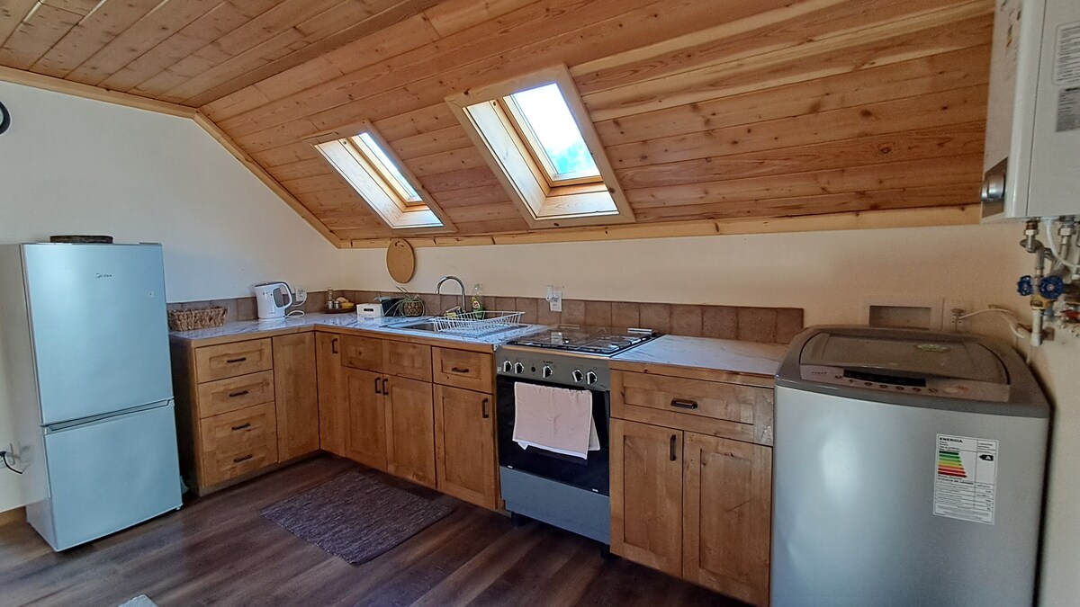 Kabin yang indah - Martín Pescador - lencana kayu 55 mts2 dengan 2 kamar tidur, satu dengan tempat tidur double dengan tempat tidur 2 - plax dan tempat tidur setengah kamar tidur satu tempat tidur persegi. Pemanas dengan radiator listrik dan pemanas pelet pusat tambahan. Kamar mandi luas dengan mesin cuci termasuk. Dilengkapi dapur dan kulkas mini. Konstruksi yang sangat baik dengan isolasi termal, lantai kayu dan semua jendela di Termopanel. Pilihan sarapan yang luar biasa seharga $ 7.500 peso Chili p/p.