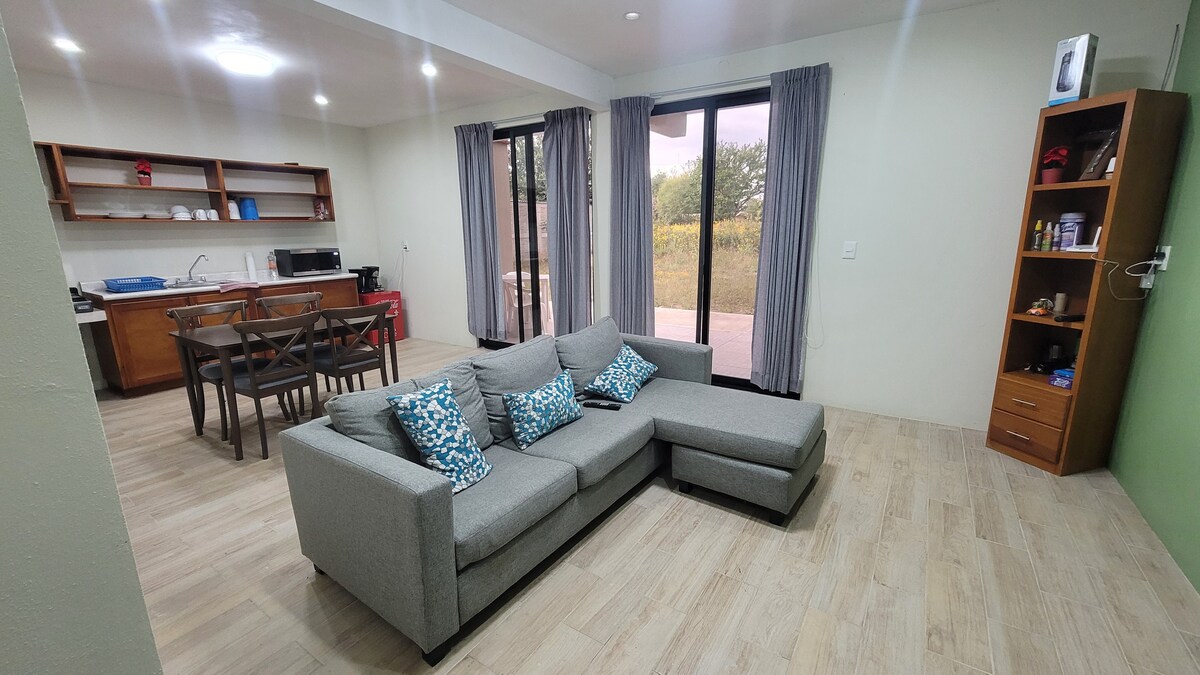 Relájate con toda la familia en este alojamiento donde la tranquilidad se respira. Experimenta el amanecer en el campo de una manera unica. Es un espacio que ofrece un entorno natural para pasar vacaciones. Se encuentra a una distancia corta de La Ciudad. Cuenta con espacios equipados, dormitorios, zona de parilla, area de juegos, wifi, smart tv, libros, estacionamiento gratis.