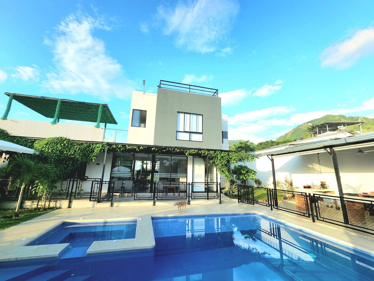 Rumah sudut di Rivera, Huila. Garasi ganda, 2 kamar tidur dengan Smart TV (4 tempat tidur), ruang tamu, WIFI, dapur integral dengan kulkas, teras, mesin cuci dan koridor tertutup untuk 3 tempat tidur gantung tersedia. Desain kontemporer yang terinspirasi oleh teka - teki artistik. Fasad khas: pinus San Jorge, kisi - kisi antrasit, dan jaring hitam. Lingkungan istimewa: udara murni, lingkungan yang tenang dan kebersihan yang terjamin ramah.