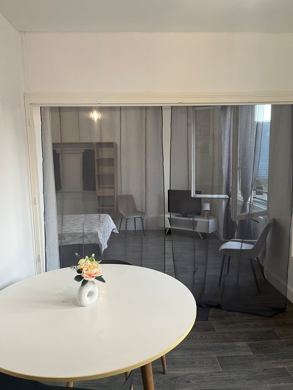 Apartemen setengah kayu berlokasi ideal di kaki katedral, distrik bersejarah dan wisata yang dekat dengan banyak toko, parkir gratis 5 menit berjalan kaki. 45m2 satu kamar tidur dengan tempat tidur 180/200 , ruang tamu, dapur lengkap,tv,wifi dan patio luar ruangan