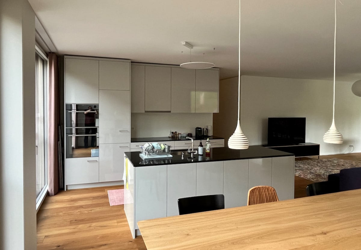 Apartemen tamu baru dan modern di bagian terhubung dari rumah ini. Apartemen studio ini memiliki tiga kamar yang dihubungkan oleh 4 dan 7 anak tangga. Kamar tengah dengan ruang tamu/ruang makan dan dapur sangat terang dengan pemandangan Kastel Sargans. Area duduk di lantai atas menawarkan panorama kastel dan Gunung Gonzen yang indah. Apartemen tamu ini ideal untuk 2–5 orang. Tempat tidur double besar, tempat tidur bertingkat, dan tempat tidur single di kamar lantai atas. Penggunaan bak mandi air panas, sauna, dan mesin cuci atas permintaan.