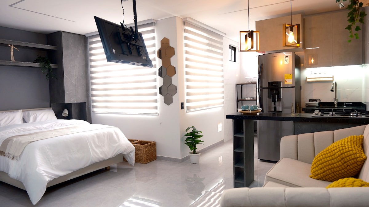 The Sky adalah apartemen studio dupleks yang ideal bagi mereka yang mencari desain, ketenangan, dan kenyamanan di Bogotá. Arsitektur bergaya mezzanine, sentuhan akhir kontemporer, dan jendela dari lantai ke langit-langit memenuhi ruang dengan cahaya alami dan menciptakan suasana modern dan nyaman yang menghadap ke pegunungan. Terletak di Cedritos, lingkungan tinggal yang aman, dekat dengan kafe, restoran, dan taman, dengan koneksi yang sangat baik. Manfaat eksklusif: tidak ada biaya layanan Airbnb. Anda membayar totalnya, tidak ada biaya tersembunyi :)