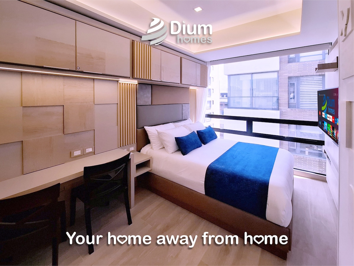 Apartamento Ultimo Piso Esquinero Hermosa Vista tipo loft en el exclusivo barrio El Chicó, Bogotá. Ideal para 2 personas, con cama queen y espacios modernos. Cerradura digital y llegada autónoma, Internet de alta velocidad, Smart TV 60”, cocina equipada y baño con hidroducha. Edificio con recepción/seguridad 24/7, personal bilingüe, terraza, parqueadero cubierto, el coworking más grande y lujoso de Bogotá. Ropa de cama calidad hotelera. Cerca del Parque93, tranquilo y céntrico.