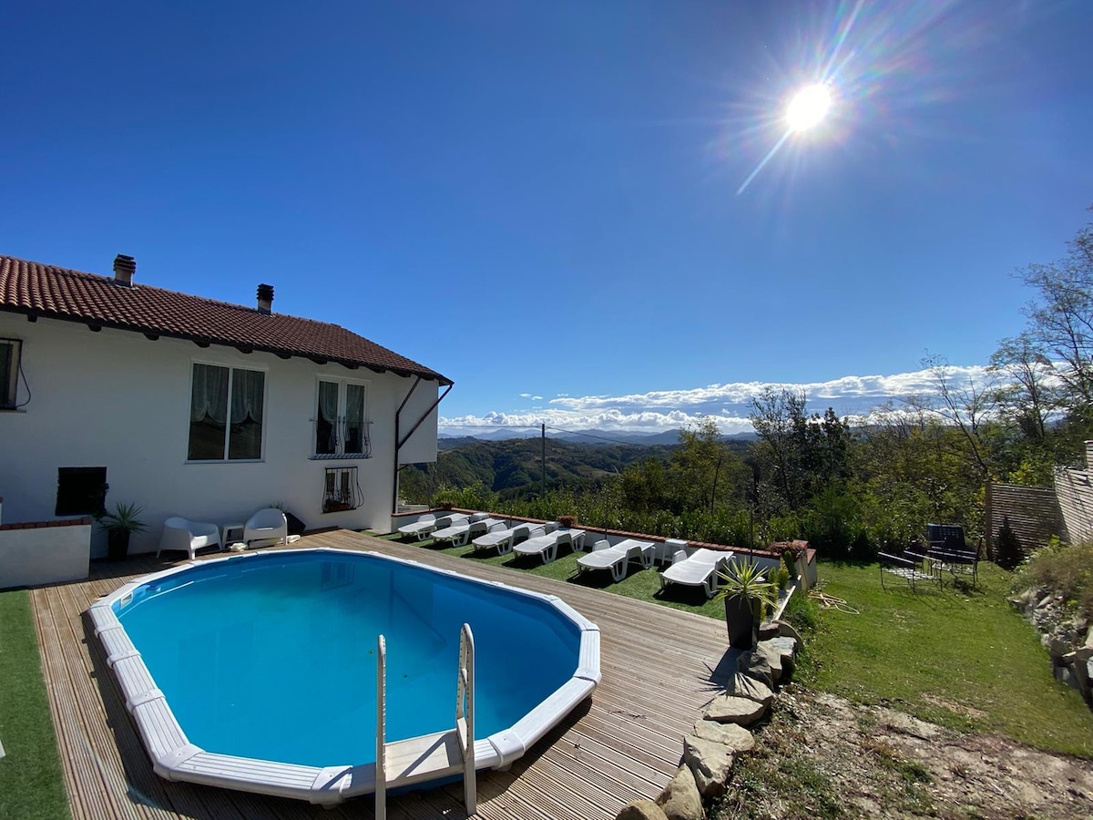 Hillside villa with pool, 5 mins from Acqui T.