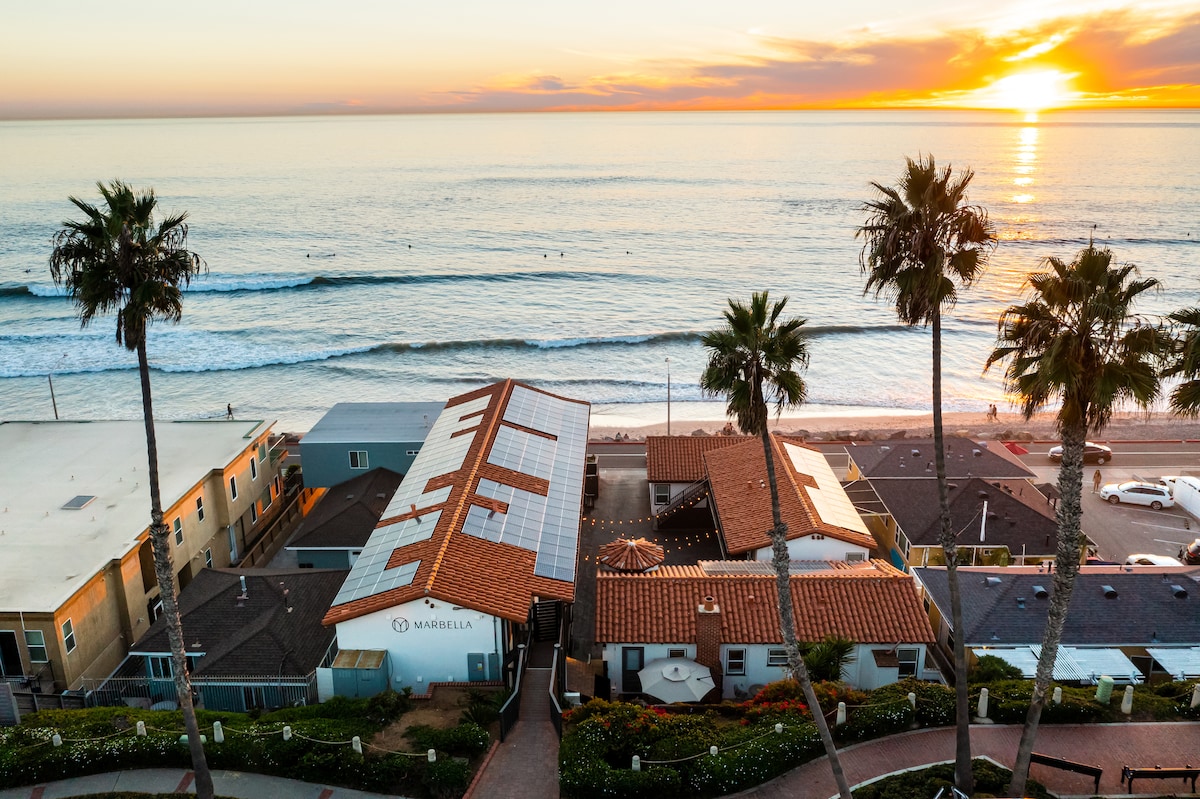 Stay in the heart of South Oceanside, where surf culture & local flavor blend effortlessly. Start your day with a craft coffee in hand, wander to eclectic boutiques & favorite neighborhood spots, then head just four blocks to the beach for sun, sand & salty air — all with South O’s easy energy as your backdrop.