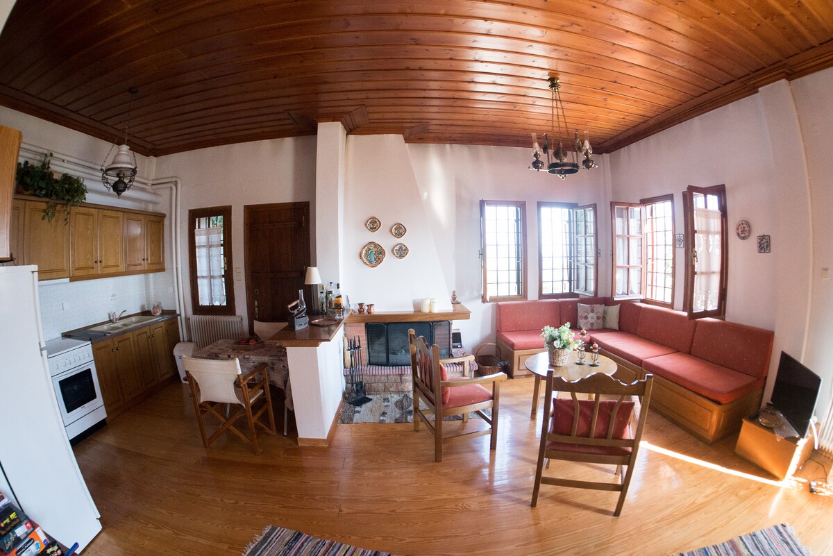 * Kasur baru 2025! * Rumah batu tua dua lantai yang telah direnovasi di sebidang tanah dengan pemandangan menakjubkan ke laut aegea yang terletak di bagian tertinggi desa tradisional Zagora. Pilihan yang bagus untuk keluarga, sekelompok teman, atau pasangan yang mencari kedamaian dan kenyamanan untuk liburan mereka; baik musim panas maupun musim dingin.
