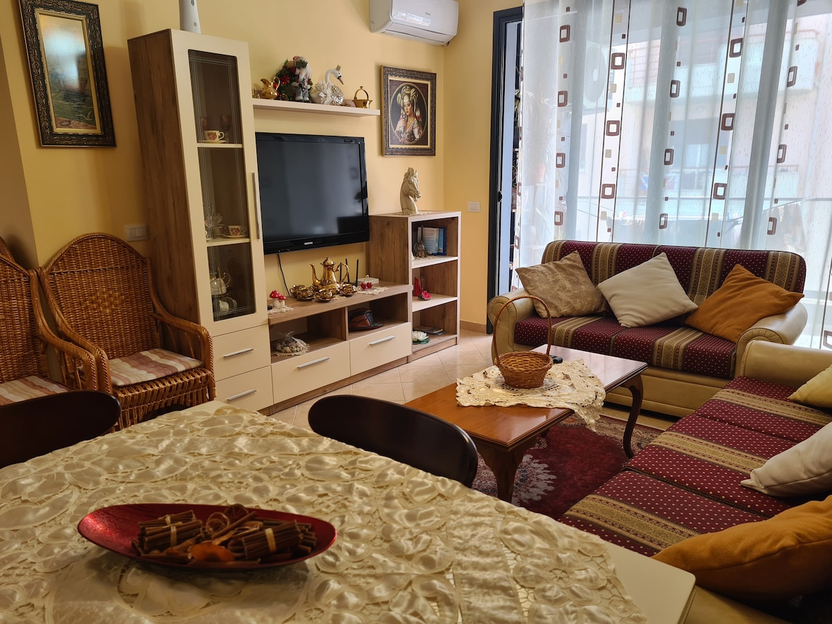 Tempat ini sangat unik,karena di dalamnya ditemukan sangat nyaman, tenang, gaya, kehangatan keluarga dan dalam waktu yang sama sangat dekat dari pusat modern Vlora, dan pantai, orang dapat dengan mudah berjalan - jalan di sepanjang laut, berenang dan kembali ke rumah. Lokasinya sangat dekat dari semua ruang sosial, seperti kafetaria, stadion, bola basket, dan permainan bola voli..nikmati sepak bola juga ke pasir...makan di rumah dengan menyiapkannya di dapur, menikmati kopi di rumah...