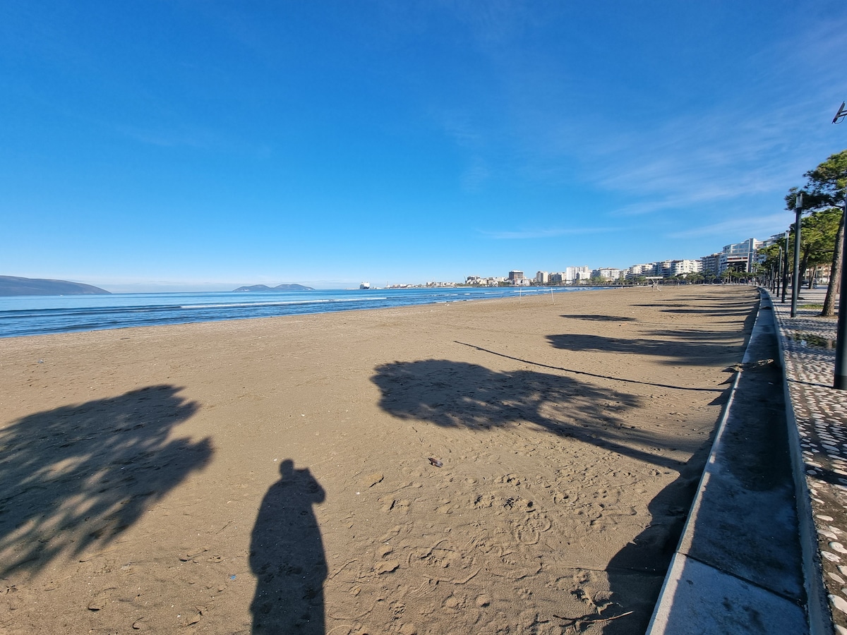 Apartemen ini berada di jantung Vlora dengan pemandangan Lungomare, Semenanjung Karaburun, dan Laut Ionnian dan Laut Adriatik yang indah. Posisinya luar biasa karena Anda memiliki Lungomare untuk berjalan - jalan yang sangat menyenangkan, restoran( saya akan merekomendasikan brooklyn resaturant), kedai kopi, Museum indipendence, Pelabuhan Vlora tempat Anda bisa naik feri ke pantai Karaburun .