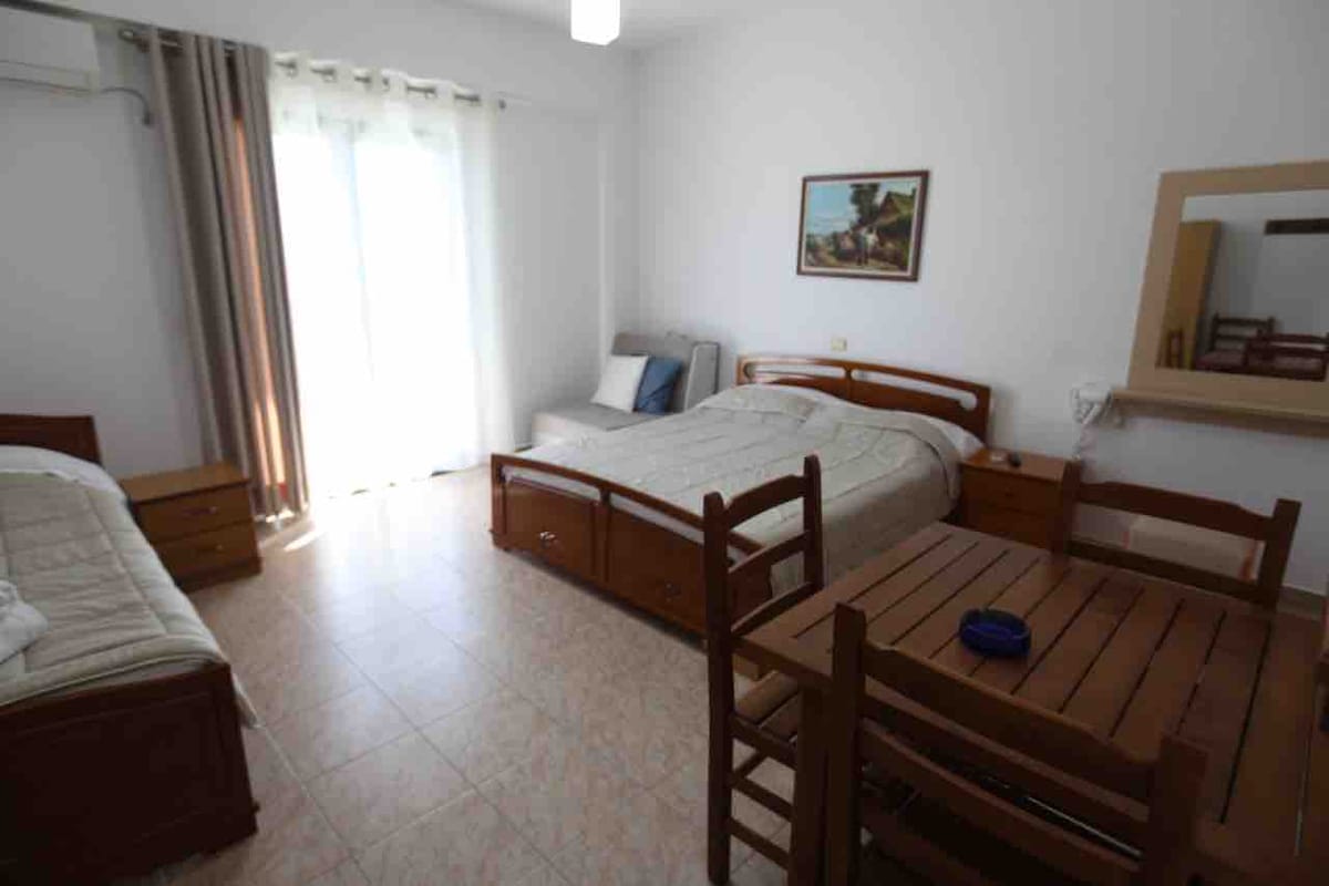Apartemen 1+1 modern di Vlorë akan menjadi rumah Anda. Lokasi sempurna:50 m dari pantai, tidak jauh dari hiruk pikuk resor,namun seluruh struktur bisa ditempuh dengan berjalan kaki. Balkon yang luas ini memungkinkan Anda menikmati secangkir kopi dengan pemandangan langsung ke teluk Vlera dan matahari terbenam yang luar biasa dengan segelas anggur di pulau Sazani. Sesuai pilihan pantai umum dan pribadi dengan kafe dalam 3 menit berjalan kaki.