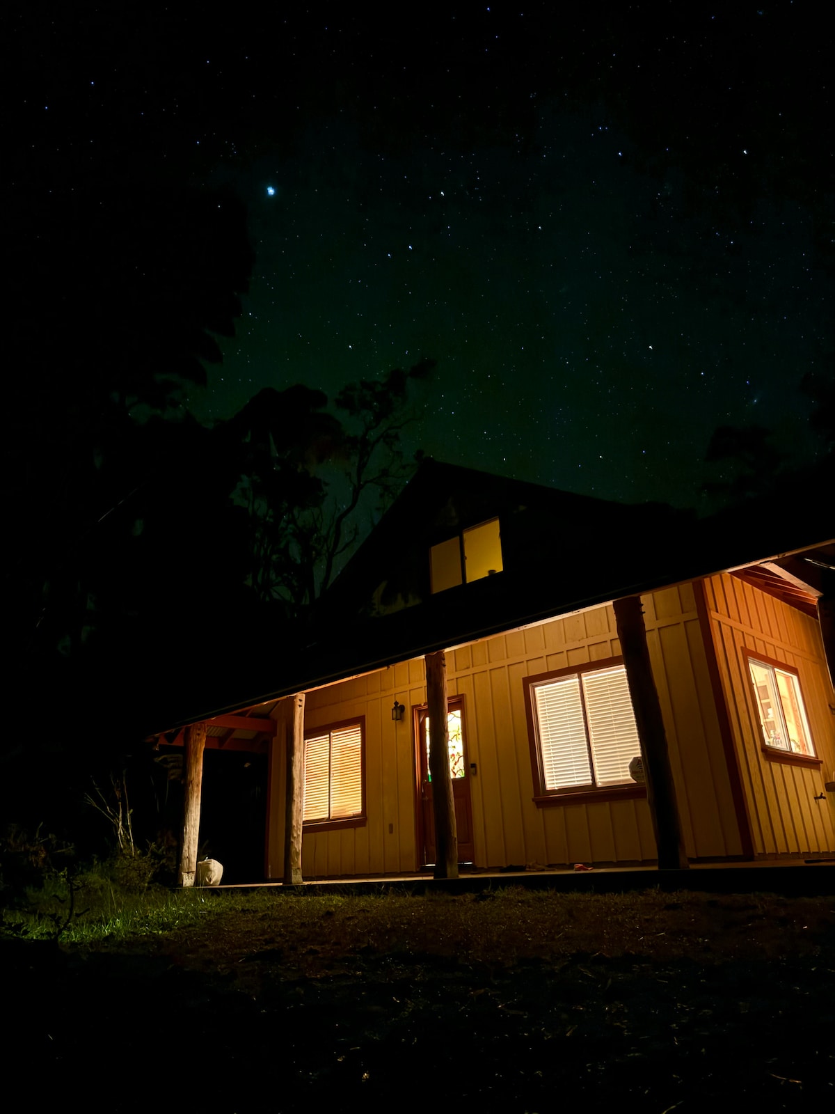 Terletak tinggi di puncak pohon zamrud, di lereng hutan Gunung Api Kīlauea, kabin kayu cemara menghadap hutan hujan asli 1,4 mil (2,2 km) dari Nāhuku (tabung lava) di Taman Nasional Gunung Api Hawaiʻi. Sojourn ini memungkinkan seseorang untuk kehadiran bersama lingkungan, untuk memulai petualangan di sekitar pulau, dan merasa nyaman setelahnya. Sesekali teman Anda termasuk perdagangan kabut terang bulan, cahaya halus Bima Sakti, dan cahaya pagi yang damai sebagai panah burung melodi tentang lanai.