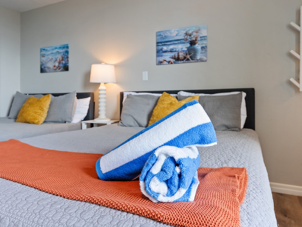 Bersantai dan bersenang - senanglah bersama seluruh keluarga di penthouse yang menakjubkan ini! Surga yang sesungguhnya. Tempat kami berlokasi di jantung pantai Daytona. Kami memiliki 2 kamar tidur ini dan unit lain dengan 3 kamar tidur. Harga dasar untuk unit ini adalah untuk 5 orang namun mengakomodasi 8 tamu dengan nyaman dan tambahan 2 tamu (total 10) di tempat tidur sofa yang nyaman. Kolam renang dan pantai kami adalah kombo yang sempurna Untuk waktu yang menyenangkan ☺️