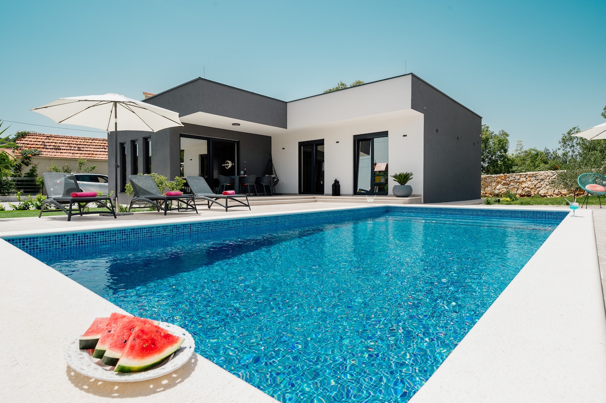 Situated on a gentle hill with panoramic views of the village below, this private villa blends time-honored stone and timber craftsmanship with sleek luxury. It offers retreat for up to six people. Relax by the shimmering pool, unwind in the private sauna or fire up BBQ for dinner.Whether you’re enjoying the house or discovering streets of UNESCO-protected Trogir—just a 10-minute drive away-this home serves as perfect base to experience the best of Dalmatia from a position of total serenity.