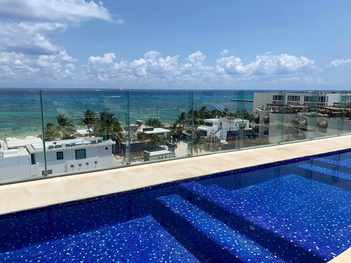 Anda akan menikmati masa inap Anda di kondominium yang luas dan modern ini, 881 kaki persegi. Tempat ini memiliki atap yang luas dengan pemandangan kota dan laut yang menakjubkan, tempat tidur berukuran king, kamar mandi besar, dapur lengkap, dan mesin cuci dan pengering dalam unit. Selama liburan Anda, Anda bisa berenang di perairan Playa Mamitas yang sejernih kristal, yang hanya berjarak 7 menit jalan kaki. Selain itu, Anda akan menemukan berbagai restoran, bar, toko, dan banyak lagi di 5th Avenue yang terkenal, yang terletak hanya satu blok jauhnya.