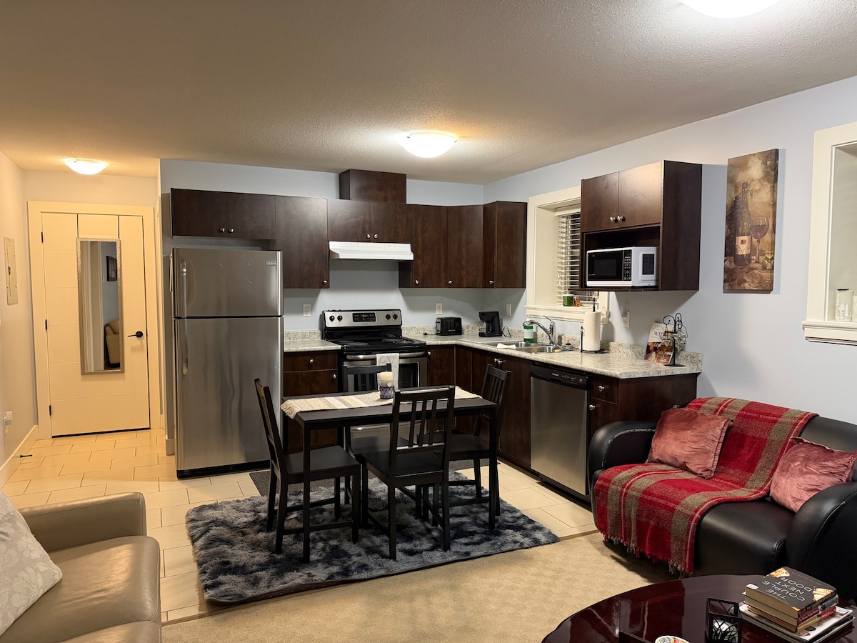 Welcome to The Grove Suite, Your Home Away From Home! This private 1,400 sq ft basement suite features its own separate entrance and is nestled in a quiet, family-friendly neighborhood. Whether you're here for work or play, you’ll find everything you need for a cozy and convenient stay. Pet-friendly with parking included! One driveway spot is available, plus free street parking nearby.