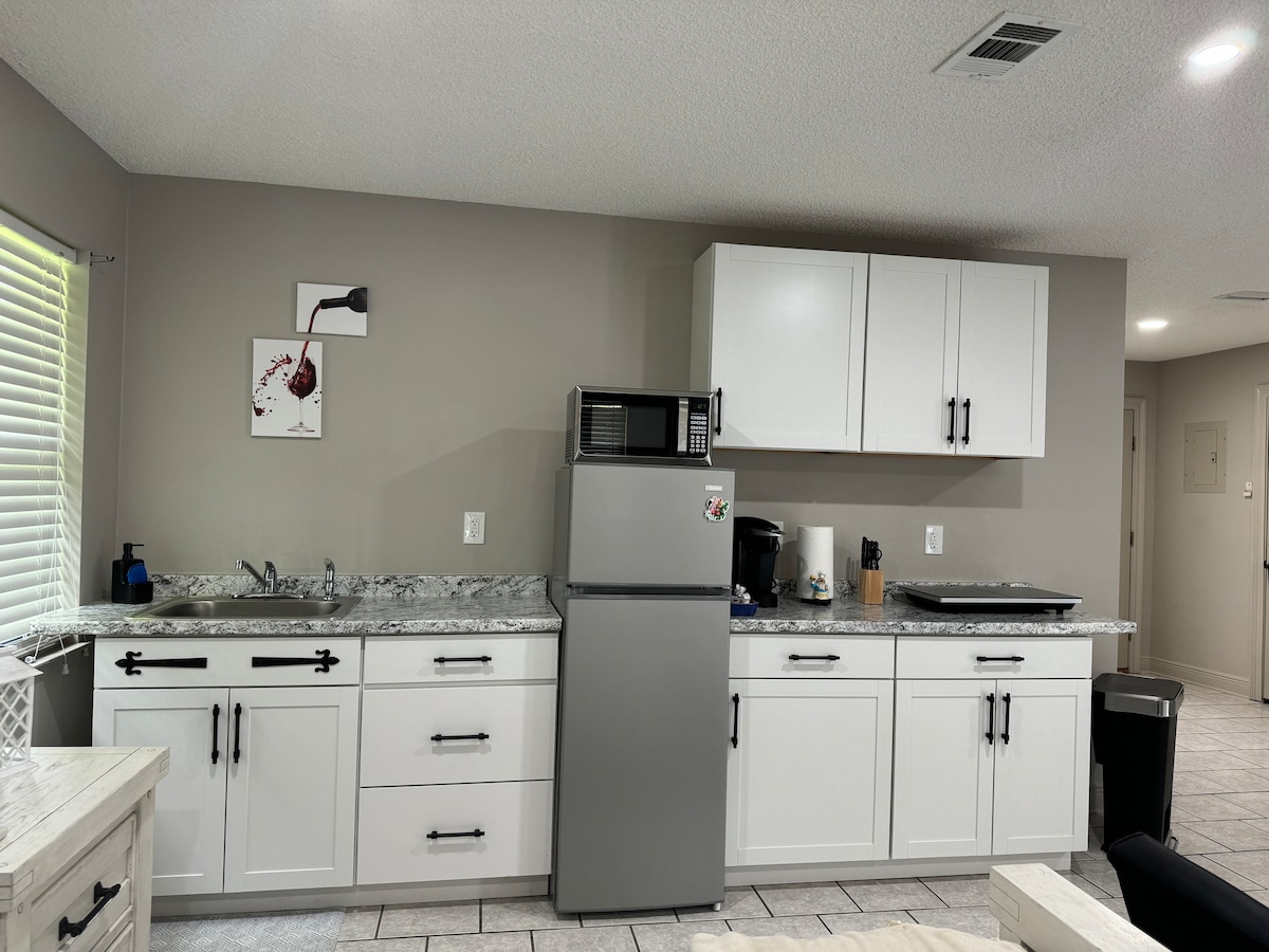Anda akan menyukai studio modern dan bergaya ini (denah lantai terbuka), benar-benar terpisah dari rumah utama, di lingkungan yang tenang, dengan: - Pintu masuk pribadi - patio pribadi - Jalan masuk ganda 4 blok dari perairan (Bayou Chico) & taman besar dengan golf frisbee. Dekat dengan segala yang ditawarkan Pensacola dan Perdido Key: - Bandara (PNS) - 8 mil - Pusat Kota Pensacola - 3 mil - Jangkauan: - Bruce Beach: 3 mil - Pensacola - 12 mil - Perdido Keys - 12 mil - Naval Air Station (NAS) - 4 mil