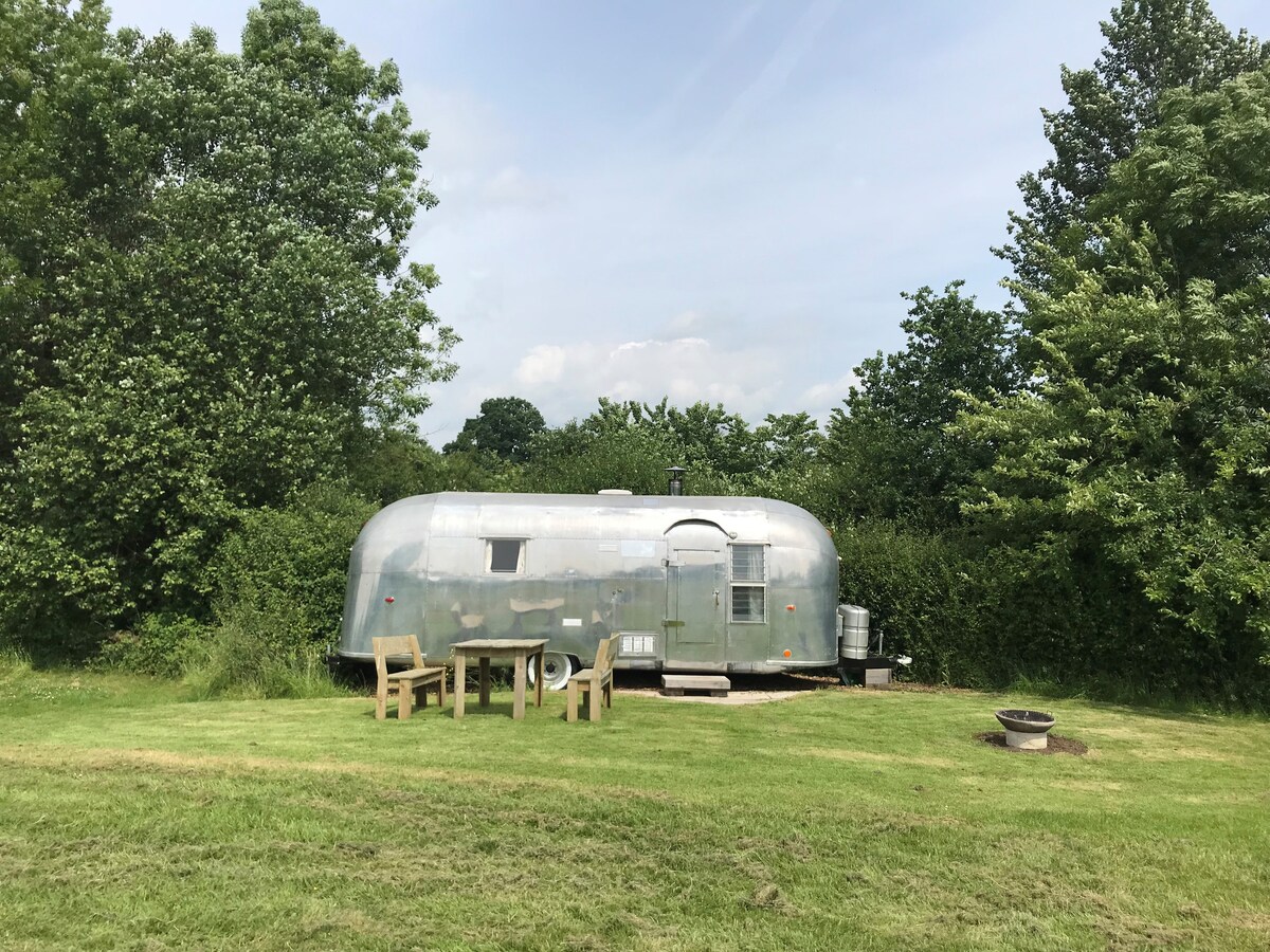 Airstream Ana terletak di perkemahan kami yang indah dan damai. Sangat nyaman dengan woodburner dan pemanas sentral, tempat ini baru saja dibangun kembali dan diperbarui dan memiliki semua yang Anda butuhkan untuk akhir pekan yang romantis dan santai. Silver Bullet tahun 1960 - an memiliki panjang 6,2 m dan lebar 2,2 m. Tempat ini berdiri sendiri dengan wastafel, (air panas dan dingin) pemanas sentral, oven gas dan kompor, di bawah kulkas dan panci, wajan, peralatan makan, peralatan makan dan peralatan makan. Ada toilet dan wastafel dengan air panas dan dingin.