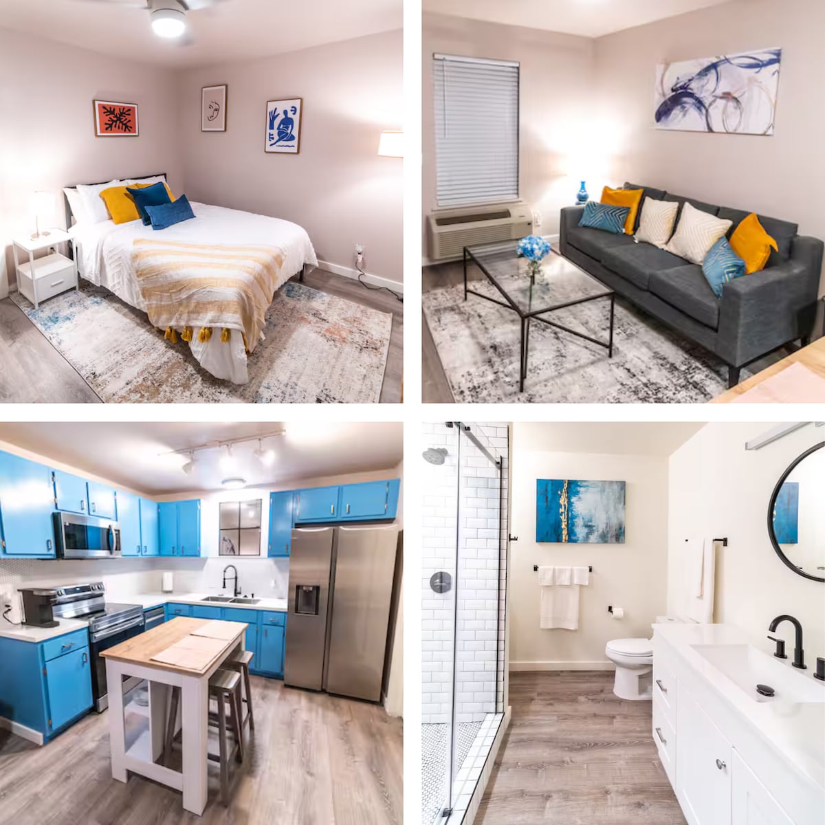 Tucked into the heart of historic downtown Springdale, this modern one-bedroom apartment sleeps 3, with 2 guests on the bed and 1 on the couch, putting everything within easy reach. Cook real meals in a fully stocked kitchen, unwind with the smart TV, and sleep soundly in fresh linens after a day exploring Ozarks parks, local museums, and some of the best casual dining in Northwest Arkansas. Free parking, self check-in, and grocery stores two minutes away make every stay effortlesly comfortable.