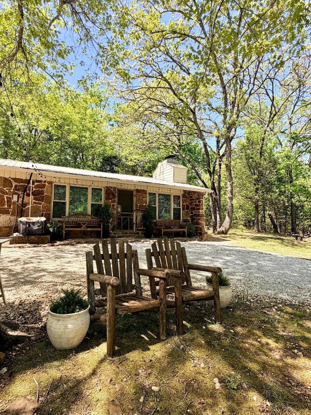 Selamat datang di Centennial Cottage! Terletak di lingkungan alam, Anda akan merasakan suasana tempat peristirahatan yang tenang, namun tetap dekat dengan semua fasilitas yang ditawarkan Fayetteville. Ini adalah tempat yang sempurna untuk liburan akhir pekan untuk menikmati alam bebas karena pondok ini terletak di dasar Centennial Park dengan bersepeda/hiking. Hanya 1,7 mil dari UofA, tempat ini adalah lokasi terbaik untuk bersantai setelah hari pertandingan atau berkumpul dengan anak - anak kuliah Anda saat berkunjung. Menampilkan lubang api dan teras tertutup.