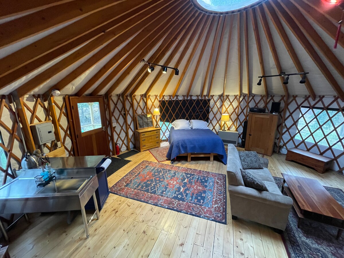 Kami terletak di perbukitan VT pusat, dekat dengan hiking, ski, dan berenang yang bagus. Putuskan koneksi untuk terhubung kembali! Rumah kami didasarkan pada desain lanskap permakultur. Bersantai di tepi kolam renang, bersantai di sauna tradisional, atau bersantai di kursi Adirondack sambil melihat perbukitan VT. Kami memiliki lingkungan yang ideal untuk detoksifikasi digital. Ini adalah salah satu dari dua tempat di tempat kami. Kami bisa mengakomodasi rombongan enam orang dengan memesan: Lower Yurt Stay di VT dan Tiny house di VT homestead