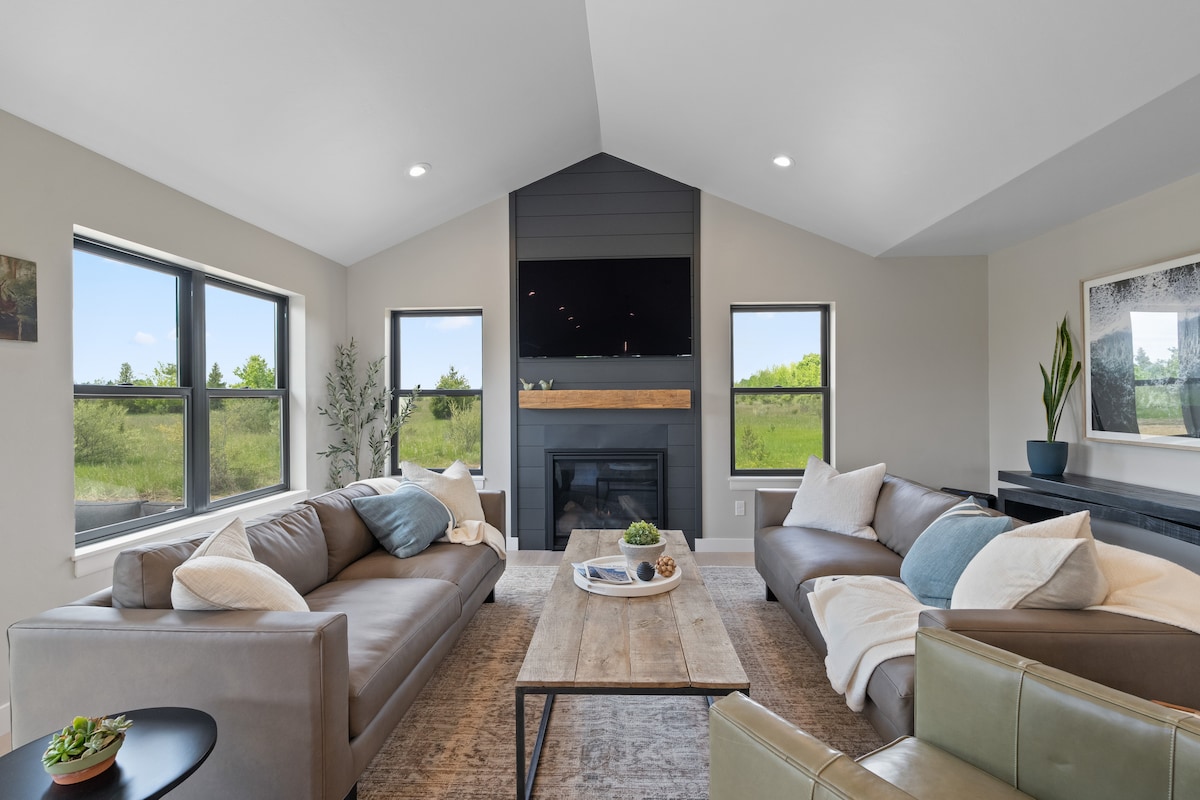 Kick back and relax in this calm, stylish space. Located 1.5 miles from the famous Cave Point attraction in White Fish Dunes State Park, our cottage has everything you need for a fun, relaxing, and peaceful stay. Located 15-20 minutes from every major town in the County: Baileys Harbor, Egg Harbor, Sturgeon Bay, Fish Creek, and Sister Bay. Our space is brand new construction in 2024 finished with stained concrete floors, electric fireplace, upscale finishes, large back patio, & shared sauna.