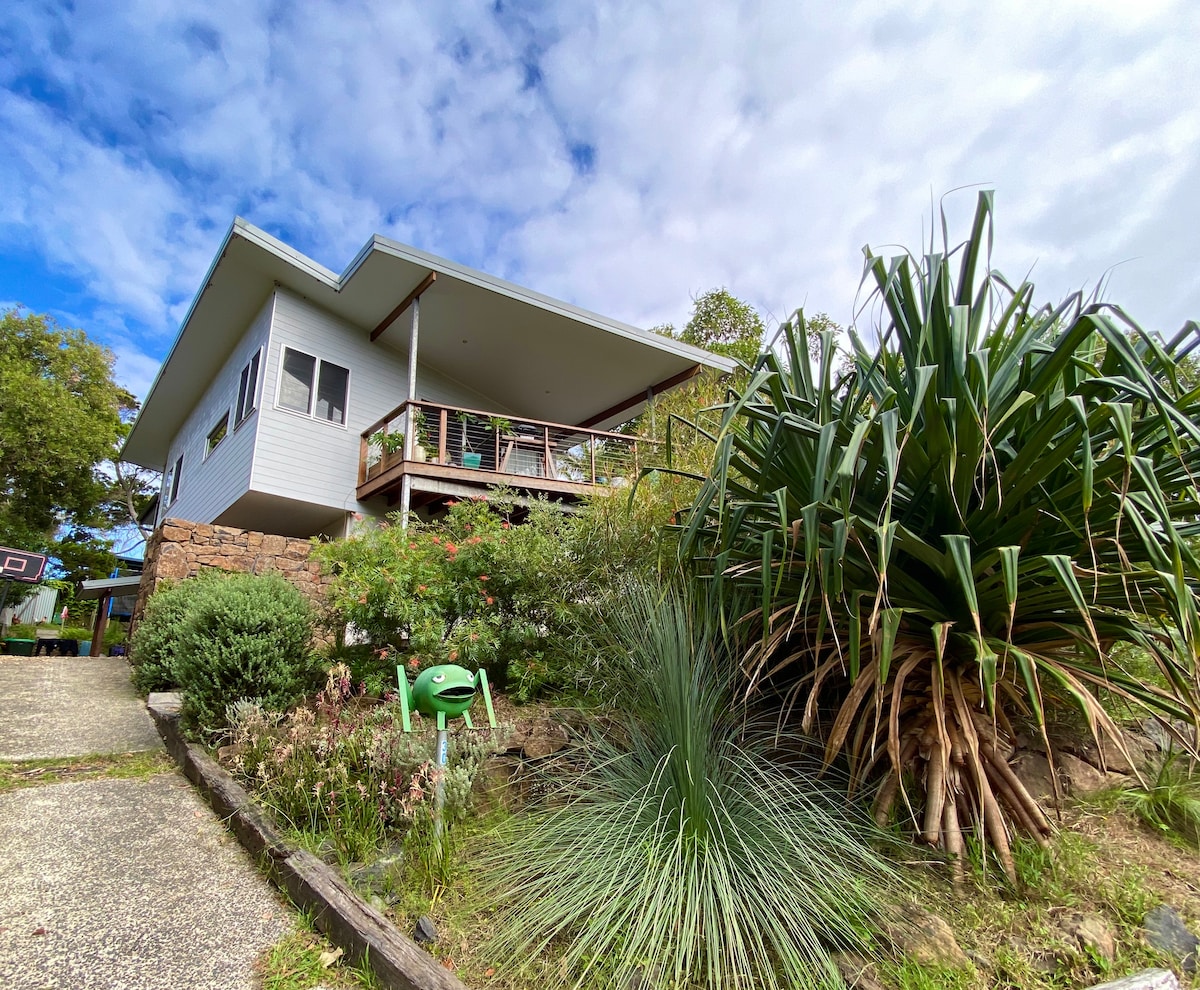 Selamat datang di tempat liburan Anda yang indah, yang diposisikan secara pribadi di properti kami, Pacific Serenity, di Coopers Shoot yang ajaib. Dianugerahi rumah terbaik dalam kategori oleh MBA NSW, dan diakui atas desainnya. Sangat terpencil, vila ini dikelilingi taman yang bersih, hutan hujan, perbukitan hijau, dan pemandangan laut. Duduklah di bawah bintang - bintang, dengarkan kicauan burung, berendam di pemandian batu di luar ruangan, dan benamkan diri Anda dalam ketenangan mutlak.