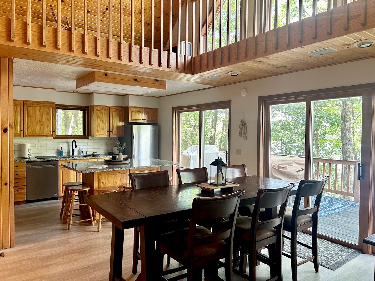Ayo nikmati kabin nyaman kami yang terletak di pohon pinus dengan bagian depan di danau yang tenang. Tempat peristirahatan sepanjang musim: Kayak, ikan, dan berenang dari dermaga selama akhir musim semi, musim panas, dan awal musim gugur. Perahu dan waterski selama musim panas - ini adalah danau rekreasi lengkap. Berkendara lima menit ke Nordic Mountain - cocok untuk bersepeda gunung di akhir musim semi, musim panas, dan musim gugur atau ski dan tubing di musim dingin dan awal musim semi. Nikmati pemandangan alam dan danau yang indah dari dalam rumah yang didekorasi dengan menawan kapan saja sepanjang tahun!