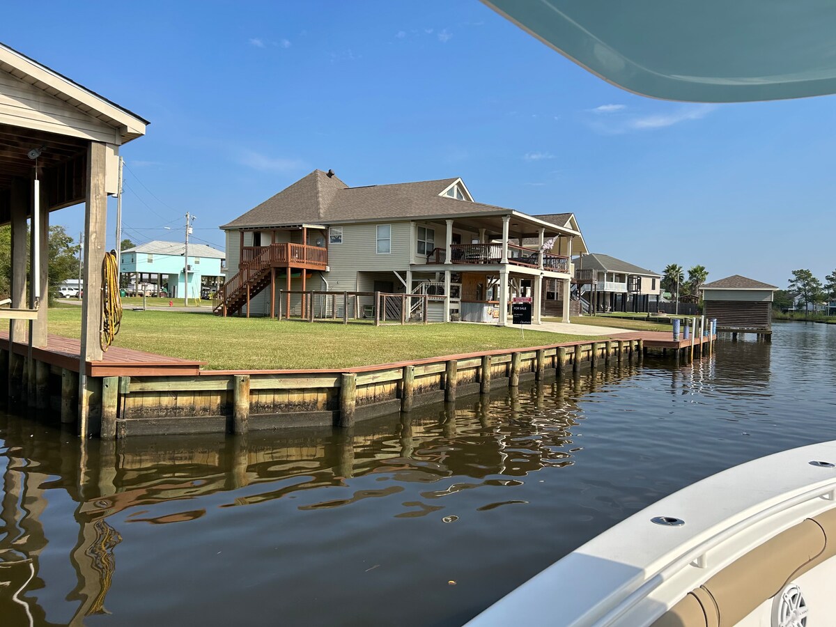 Penginapan liburan modern yang berlokasi di The Bayou Phillips Estates. Rumah 3 kamar tidur, 2 kamar mandi yang luas ini memiliki denah lantai terbuka dengan langit - langit berkubah, peralatan modern, dek tertutup dan berperabot yang menghadap Bayou dengan dermaga pribadi, semuanya di lahan luas yang dikelilingi oleh hutan. Memancing yang luar biasa langsung dari dermaga pribadi dan akses langsung ke The Bay. Peluncuran perahu lokal hanya berjarak satu blok! Kayak & Bola Basket. Kurang dari satu jam berkendara ke New Orleans, Biloxi, Gulfport, dan Long Beach.