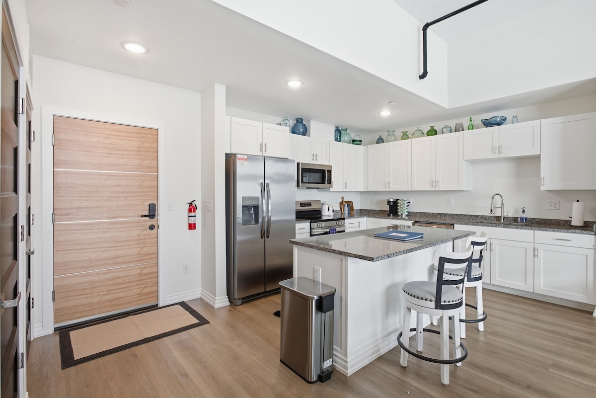 Welcome to our luxurious 2-bedroom Penthouse loft in the heart of downtown Wyandotte!! Some highlights include: -A HUGE, residents-only pool -A well-equipped gym -Enhance your golf skills on the rooftop putting green -Arcade with 14 Games -City views from the private balconies -Sunbathe or relax in rooftop cabanas -Spacious kitchen, ready to tackle any culinary challenge with finesse Immerse yourself in the convenience of being within walking distance from events and a diverse culinary scene.