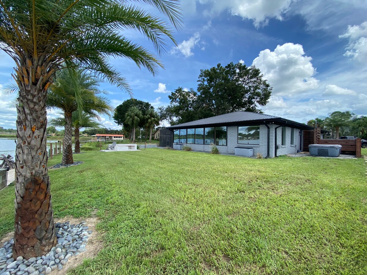 Datanglah bersantai di pinggir sungai di sewa liburan 3 kamar tidur dan 2 kamar mandi di Lady Lake, Florida ini. Baru - baru ini dibangun oleh keluarga kami pada tahun 2022, rumah ini memiliki teras belakang yang disaring, perapian, WIFI, dan dilengkapi dengan dermaga pribadi besar tepat di Sungai Ocklawaha. Semua itu dan lokasinya hanya 10 menit dari The Villages di mana Anda bisa berbelanja dan bersenang - senang. Terletak 1 -1/2 jam dari Disney, pantai Daytona, dan Tampa. Akses kunci kotak berkunci tersedia untuk check - in kapan saja.