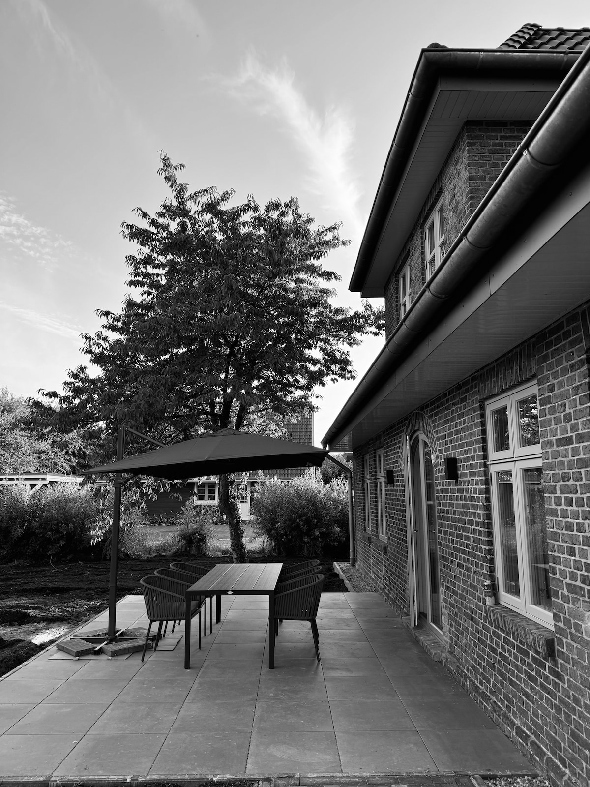Selamat datang! Rumah atap jerami eksklusif ini menanti Anda di gerbang Sankt Peter - Orrdings. Di lokasi yang benar - benar terpencil, rumah ini tersedia di properti seluas 3000 meter persegi dengan 6 e - bike dan rumah sauna. Ideal untuk para lajang, pasangan, dan keluarga yang ingin merasakan udara Laut Utara. Ada 4 kamar tidur, satu di galeri terbuka, dapur dengan area makan yang nyaman, ruang tamu dengan perapian, kamar mandi dengan shower kaca walk - in, toilet tamu, semua yang bisa Anda sebut rumah!