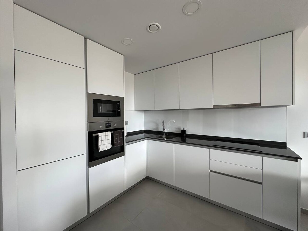 Terletak di lantai 24, hanya beberapa menit berjalan kaki dari pantai. Vila ini memiliki dua kamar tidur: kamar tidur utama dengan kamar mandi en-suite dan pemandangan laut panorama, dan kamar tidur kedua dengan pemandangan gunung. Tempat ini juga memiliki teras yang luas dengan pemandangan laut yang menakjubkan. Di lantai 26, Anda akan menemukan kolam renang dengan pemandangan laut panorama, sauna, dan pusat kebugaran. Di area luar ruangan, Anda bisa menikmati dua kolam renang, jacuzzi, lapangan olahraga serbaguna, taman bermain anak-anak, dan lapangan padel.