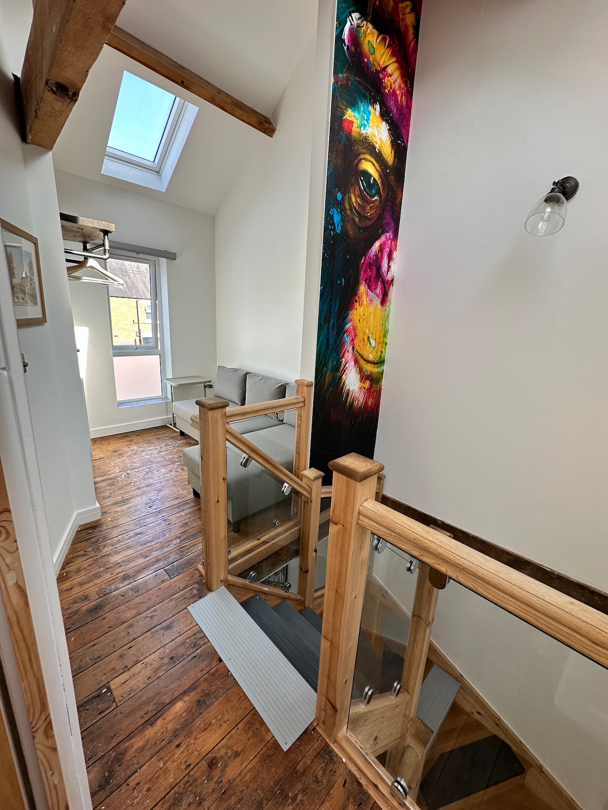 Flat studio ini berada di gedung yang sama seperti tempat kami yang lain. Benar - benar terpisah dari rumah utama dengan dapur kecil modern, tempat tidur double yang nyaman, kamar mandi dengan shower dan pemanas di bawah lantai. Ideal untuk individu atau pasangan untuk menikmati masa inap singkat yang menyenangkan. Tempat ini memiliki smart TV, wi - fi, pemanas sentral, mikro,kulkas, pemanggang roti, dan ketel. Belum mendapatkan oven, kompor, freezer, mesin cuci, dan mesin cuci piring. Sayangnya tidak cocok untuk ditinggali bayi atau anak - anak. Ada bundaran hampir di depan.
