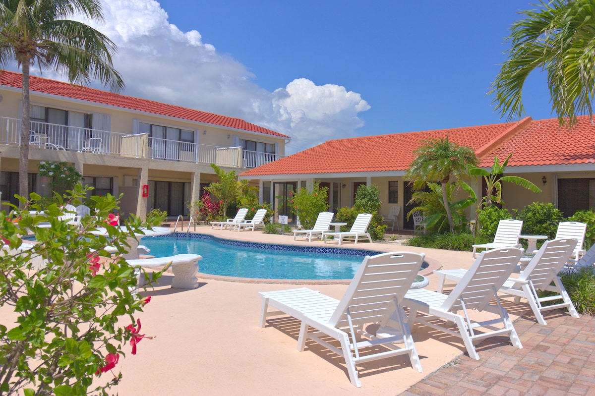 Selamat datang di studio lantai dasar BEACHFRONT kami yang BARU direnovasi di Coral Beach Resort yang indah yang hanya berjarak 20 langkah dari pantai berpasir putih sejauh 3 mil yang bersih! Studio yang cerah ini bisa menampung hingga 3 tamu, dilengkapi tempat tidur king size dan sofa bed lipat berukuran besar. Dapur yang luas, nyaman, lengkap, patio yang menawan, AC baru, Wi-Fi, TV kabel. Hanya beberapa langkah dari kolam renang yang terawat dengan baik dan pantai berpasir putih halus, dengan surga air biru menanti!