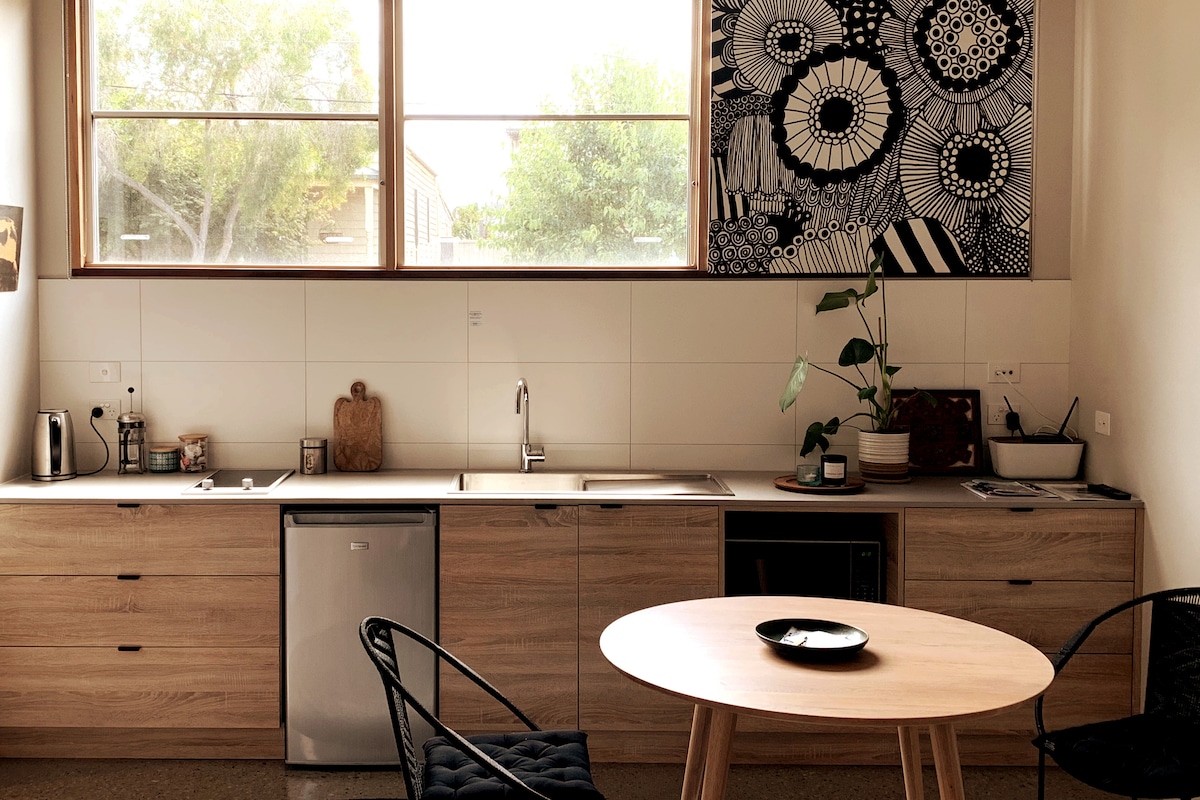 Apartemen 1 kamar tidur kami adalah tempat modern yang berlokasi nyaman hanya dengan berjalan kaki singkat ke stasiun kereta West Footscray, hanya 5 halte ke Melbourne Central. Dirancang & didekorasi secara profesional, apartemen ini dipenuhi pesona, dilengkapi dengan furnitur yang nyaman, peralatan modern termasuk smart 65 inchTV, ruang kerja, mesin cuci/pengering internet cepat, pancuran besar & dapur dengan mesin Nespresso, microwave, pencuci piring & semua perlengkapan dasar memasak. Bersantai dengan Latte di tempat peristirahatan luar ruangan pribadi!