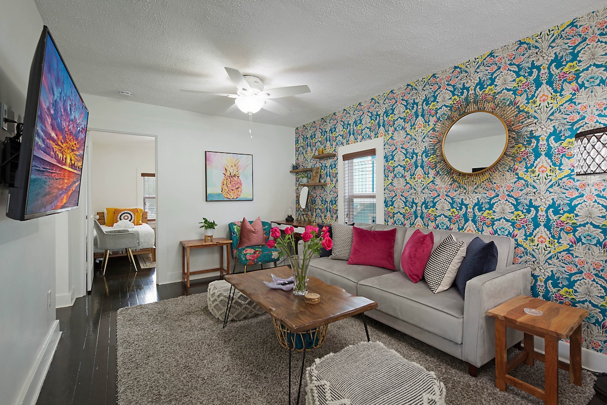 Selamat datang di "Royal Poinciana" di Distrik Bersejarah Lake Worth Beach! Pondok 1920 - an kami yang indah dan direnovasi sepenuhnya berjarak 100 meter dari Intracoastal Waterway, satu mil dari Lake Worth Beach, dan hanya beberapa blok ke pusat kota. Anda akan memiliki dapur lengkap dengan peralatan terbaik, halaman pribadi besar dengan pancuran luar ruangan dan perapian, penatu di unit, WiFi, dan Roku TV. Termasuk 2 sepeda beach cruiser, kursi pantai, handuk, dan payung. Musim gugur jatuh cinta dengan oasis kami yang menakjubkan!