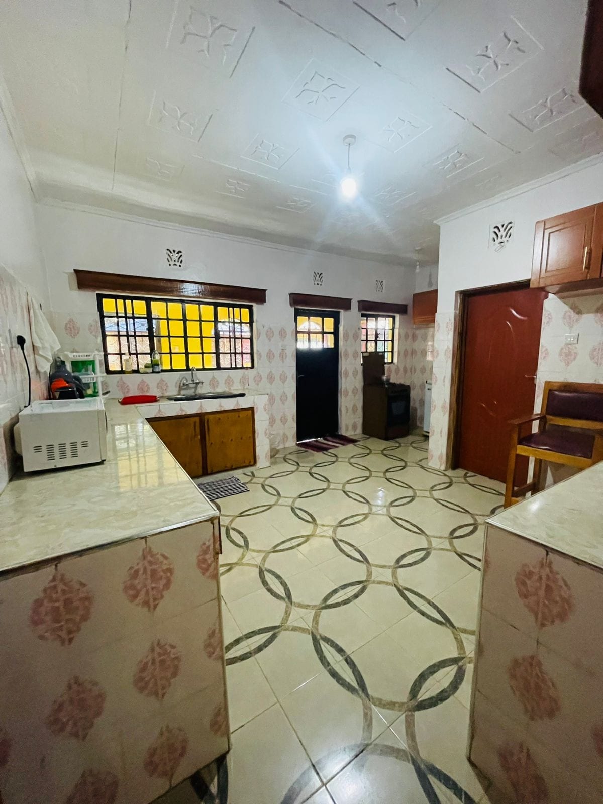 Rumah ini adalah bungalo. Terletak di Kitale, Rift Valley Kenya. Premisnya berada di sebuah peternakan. Sapi, domba, dan unggas dipelihara. Anda bisa menikmati alam dalam kondisi terbaik. Lingkungannya luas untuk berjalan - jalan. Berjarak 15 menit berkendara dari kota Kitale dan beberapa menit berjalan kaki ke pusat perbelanjaan lokal. Air mengalir, dan listrik tersedia. Keamanan terjamin dan tuan rumah akan siap membantu.