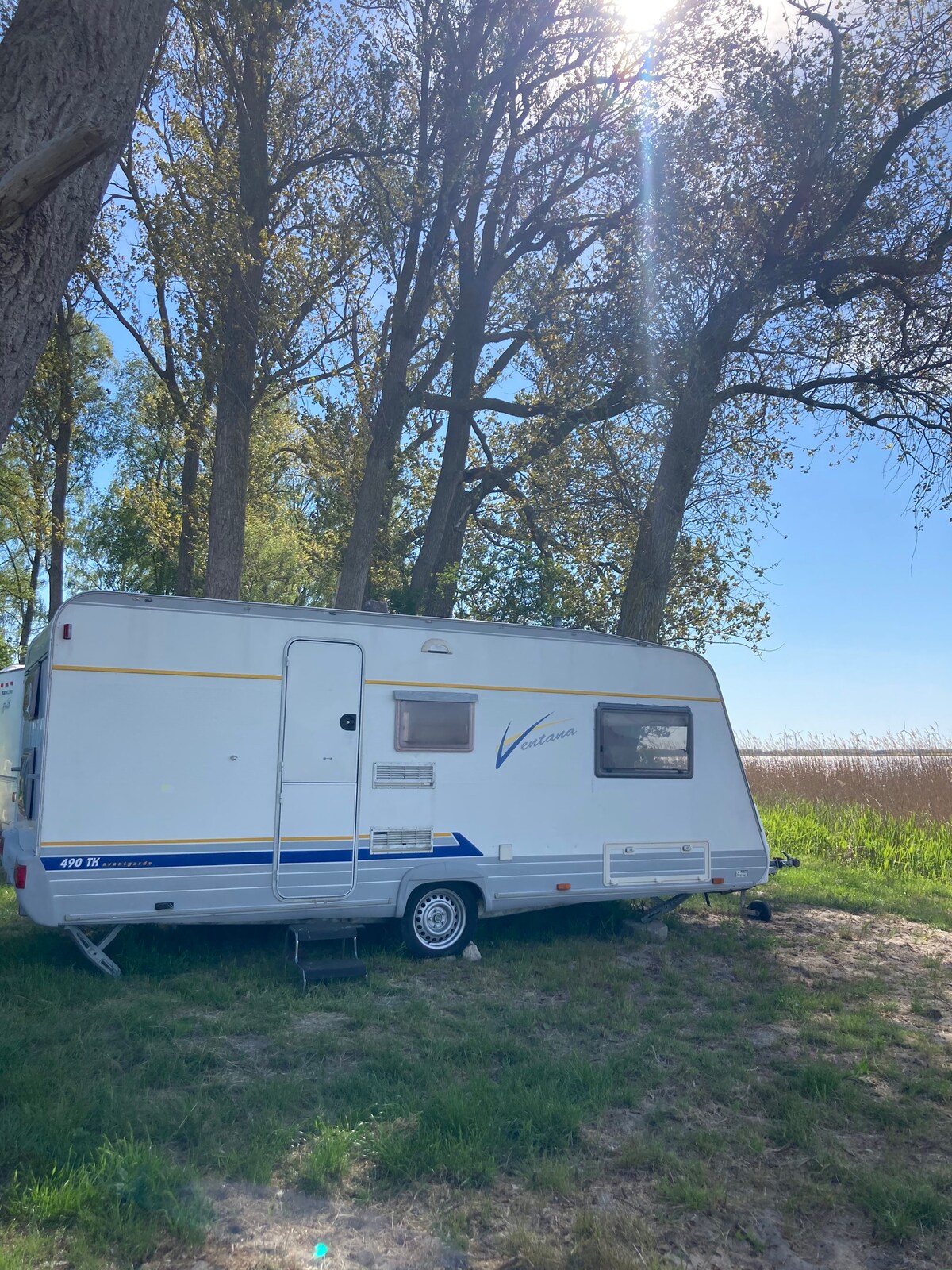 Selamat datang di salah satu RV kami dengan dekorasi buatan tangan! Bangun tidur di alam dan nikmati sesi yoga pagi atau kopi di teras kayu kami dengan pemandangan danau. Kami berada di lokasi berkemah di tepi danau "Resko ", 5 menit berjalan kaki dari tepi laut. Karavan Anda dilengkapi kulkas. Ada 2 tempat tidur double dan 2 tempat tidur single. Kamar mandi digunakan bersama dengan seluruh komunitas perkemahan kami. Ada beberapa toilet dan pancuran. Jangan sungkan untuk mengajukan pertanyaan kepada kami. Tak sabar rasanya ingin bertemu dengan Anda di oasis kami:)