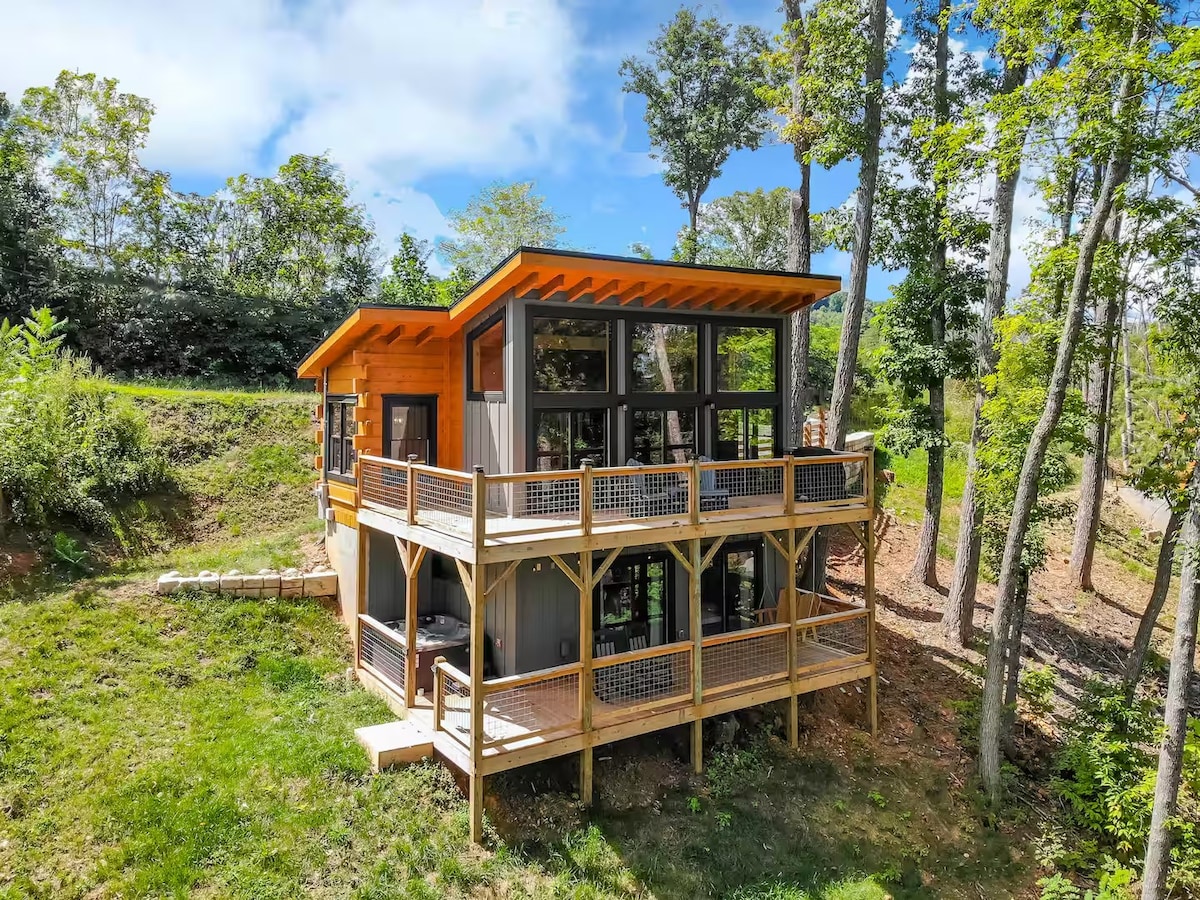 Rasakan kemewahan tiada tanding di Windows to the Mountains, keajaiban modern yang terletak di Gatlinburg dengan pemandangan Mt yang menakjubkan. Leconte. Chalet memiliki dek atap dengan modpool, bioskop, dan fasilitas luar ruangan yang indah. Nikmati dapur lengkap, ruang duduk yang nyaman dengan perapian uap, dan suite utama dengan kamar mandi seperti spa. Lengkap dengan bar kopi, meja permainan, dan sauna, Windows to the Mountains menawarkan tempat peristirahatan eksklusif bagi tamu yang mencari liburan mewah.