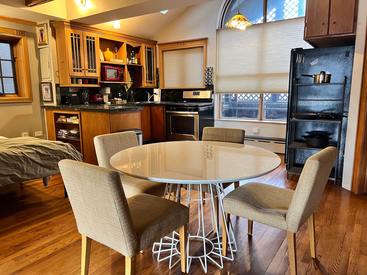 Rumah pelatih yang baru direnovasi ini nyaman menampung 3 orang dewasa namun bisa tidur 4 orang. Hanya 7 menit berjalan kaki dari kereta "L" (jalur biru CTA ke bandara O'Hare & pusat kota). Dekat dengan lingkungan tinggal Chicago's Wicker Park dan Logan Square dengan banyak pilihan hiburan malam dan bersantap dalam 10 -15 menit berjalan kaki. Ruang ~750 kaki persegi memiliki kamar tidur dan kantor di lantai atas; lantai dasar memiliki dapur/ruang tamu gabungan dan satu kamar mandi. 4 batas tamu berdasarkan peraturan hunian kota Chicago.