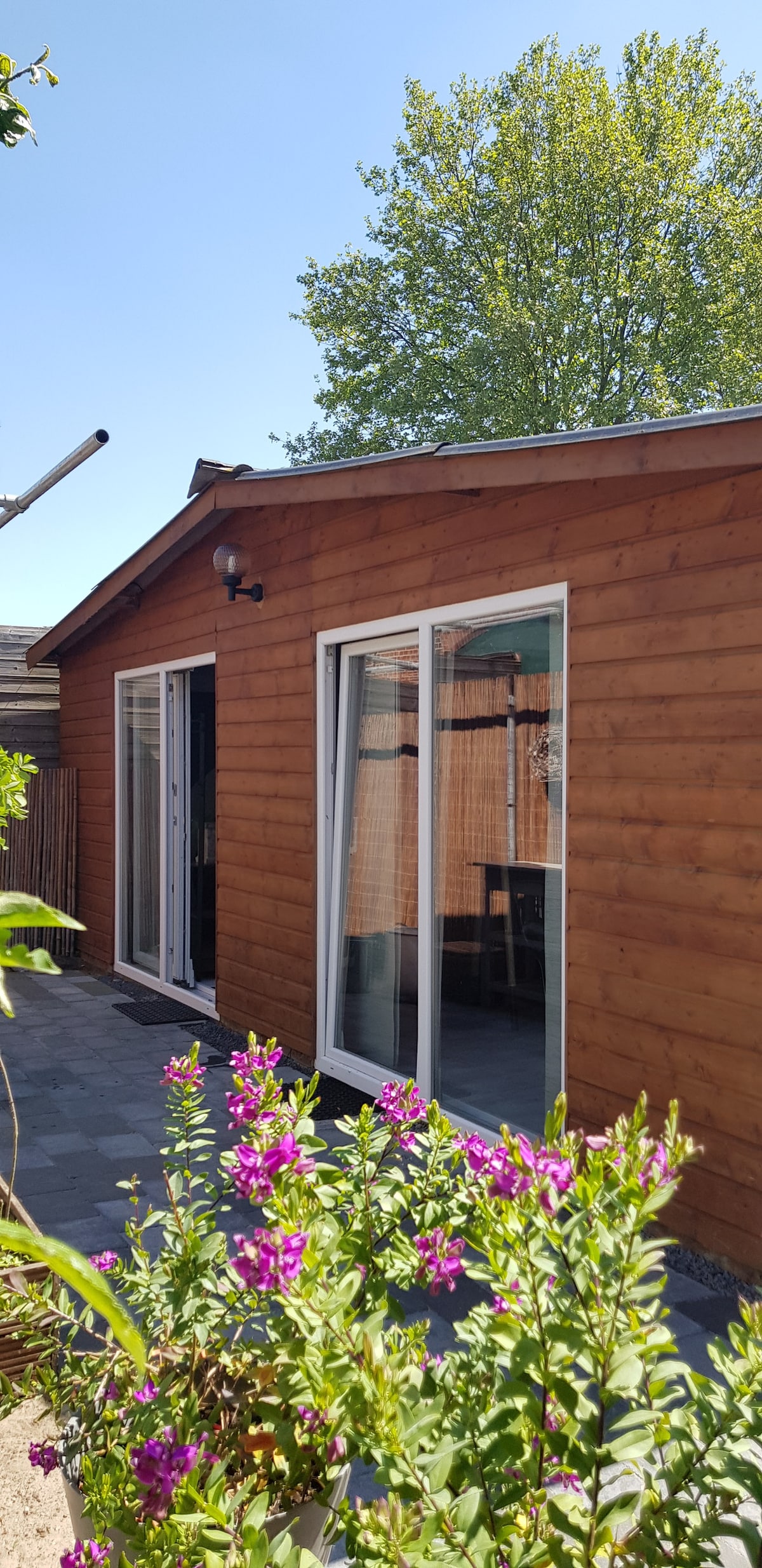 *Maksimum 2 orang dewasa - ada 4 tempat tidur (2 untuk anak - anak, tangga curam! Baca deskripsi sebelum memesan). Biaya ekstra sebesar 4p adalah € 30 per malam* Apakah Anda mencari tempat yang nyaman, di tengah - tengah kebun sayur yang riang penuh bunga? Selamat datang. Rumah taman terletak di tengah - tengah taman seluas 2000m2 kami. Di tepi taman Anda akan menemukan sauna dan bak mandi air panas yang menghadap padang rumput. Kami tinggal di sebagian besar taman di sini, dan akan senang berbagi kekayaan alam luar ruangan dengan orang lain.