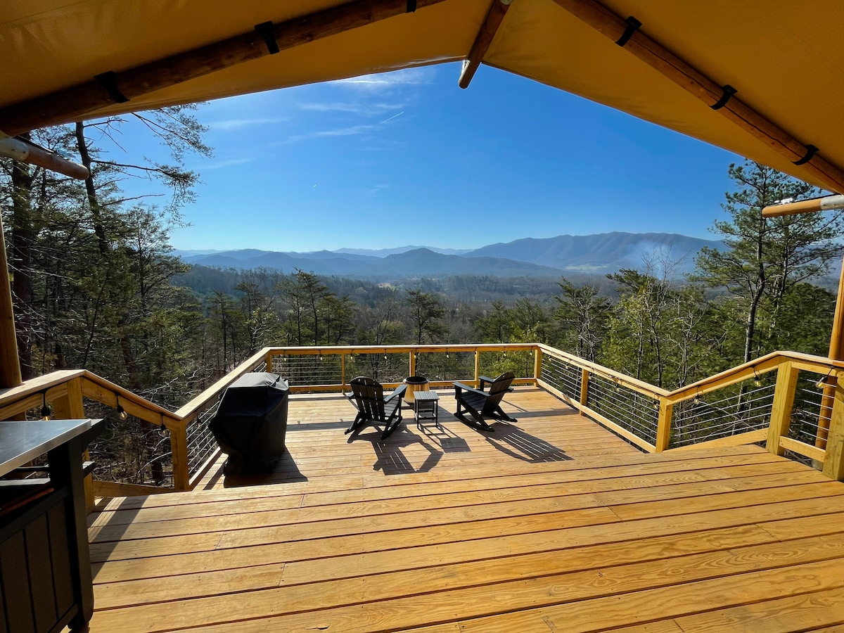 Tenda glamping ini memiliki semuanya. Pemanas & AC, TV, pemandangan, pemanggang, dan BAK MANDI AIR PANAS YANG BARU ditambahkan! Thunderhead Ridge Getaways menawarkan cara BARU untuk menjelajahi Smoky Mountains. Kami sangat senang dengan penginapan glamping mewah kami dengan pemandangan Thunderhead Mountain & Great Smoky Mountains of Tennessee yang mempesona. Nikmati dek besar mewah yang sebagian tertutup dengan pemanggang. Lihat “Flying Squirrel” 2BR kami TIDAK ADA HEWAN PELIHARAAN. TIDAK ADA Deposit $ 250. Ikuti kami di Media Sosial @thunderheadridgegetaways #Pemandangan Glampingwitha