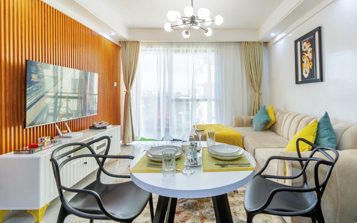 Mengapa Anda Akan Senang Menginap di Sini • Terletak di gedung kelas atas yang aman di Westlands • Estetika abu-abu dan perak modern dengan nuansa hotel butik • Area tamu yang nyaman, cocok untuk bersantai atau bekerja dari jarak jauh • Dapur berfasilitas lengkap dengan peralatan & perlengkapan dasar • Kamar tidur nyaman dengan perlengkapan tidur bergaya hotel • Wi - Fi cepat dan andal • Akses balkon • Akses mudah ke lift, parkir, restoran, pusat perbelanjaan, dan hiburan