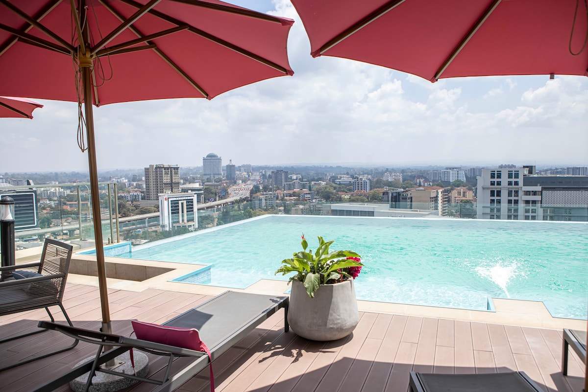 Enjoy stunning Nairobi skyline views from this elegant 14th-floor apartment in Westlands. Bright, airy, sunlit space with a spacious balcony in a prime, secure location. Set in the quiet UN Blue Zone. Close to great restaurants, malls, nightlife, GTC and the museum. About ~20 mins to the airport. What guests love: • Central location • Rooftop pool & patio • Gym with city views • Fast Wi-Fi • Excellent security • Fully equipped apartment Ideal for professionals, couples & premium staycations.