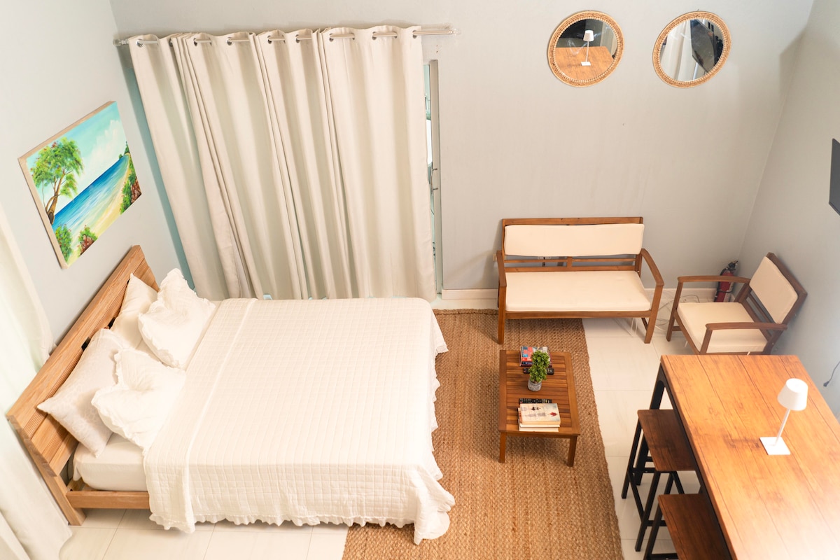 Tidak ada RUANG BERSAMA - hanya ruang bersama adalah POOL. Nikmati pengalaman bergaya di kompleks apartemen bergaya hotel yang berlokasi di pusat kota ini. Apartemen studio pribadi dengan pemandangan laut lengkap, bahkan saat berbaring di tempat tidur apung futuristik. Furnitur dan peralatan modis modern untuk kenyamanan Anda. Restoran lokal dan pantai hanya berjarak dua menit berjalan kaki. Properti berpagar yang indah dengan kolam renang berpemanas! Apartemen ini adalah media sosial yang layak / berfoto dengan sempurna - pamer dan nikmati !