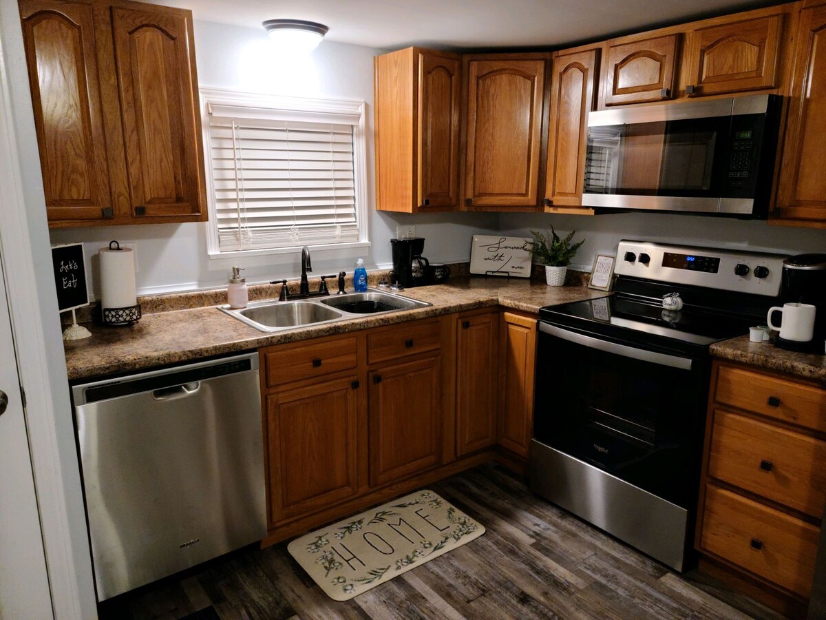 Totally remodeled home with gorgeous lake views and stunning sunsets along with lake access. Newly remodeled and freshly painted with all new appliances, new mattresses and bedding, new wrap around deck, new fire pit, new flooring, and lots of outdoor furniture to enjoy the views of the lake and amazing sunsets. The home is nestled in a family oriented campground with wildlife close by. *Note* typically between September and March the lake levels are down.